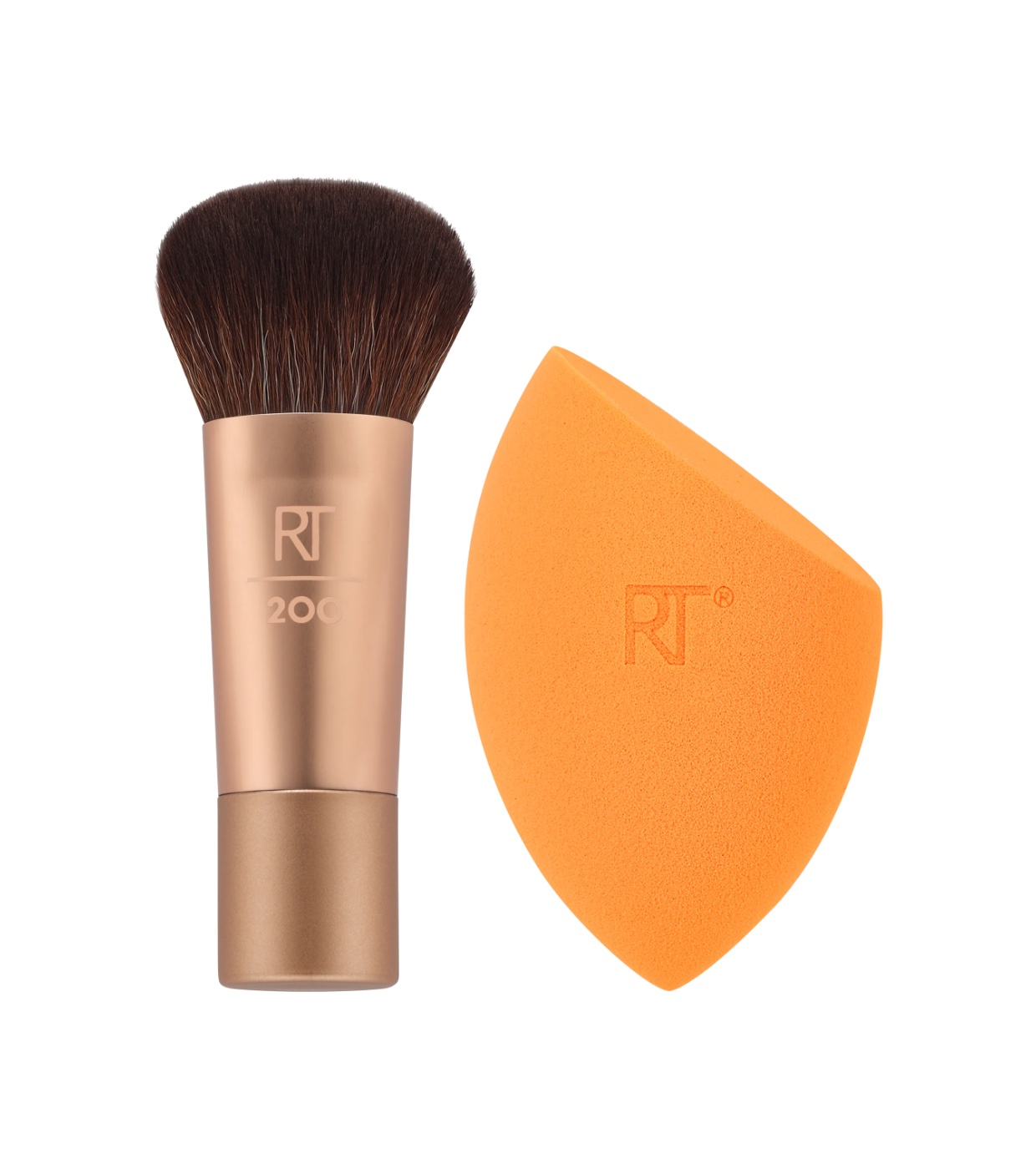 Dieses Set enthält unseren ikonischen orangefarbenen Make-up-Schwamm und einen Mini-Grundierungspinsel, die für die Verwendung mit flüssigen und cremigen Formeln konzipiert sind.