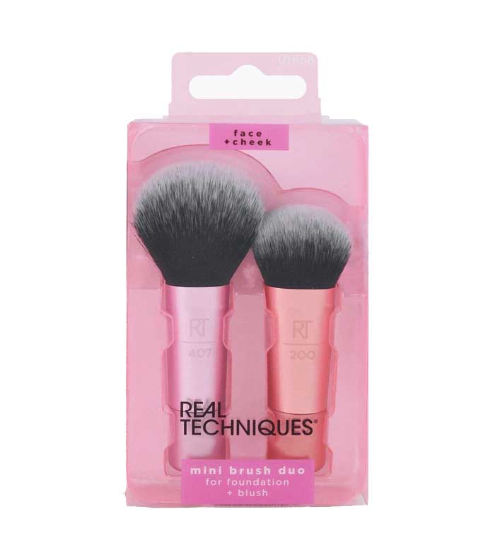 LuciaEl dúo de mini brochas de Real Techniques es súper práctico tanto para viajar como para trabajar con él. La brocha destinada para la base aplica cualquier producto en crema en la zona precisa y la de colorete difumina e integra todo genial, dejando un acabado muy natural. Son un combo ideal para maquillarte rápido y sin complicaciones.