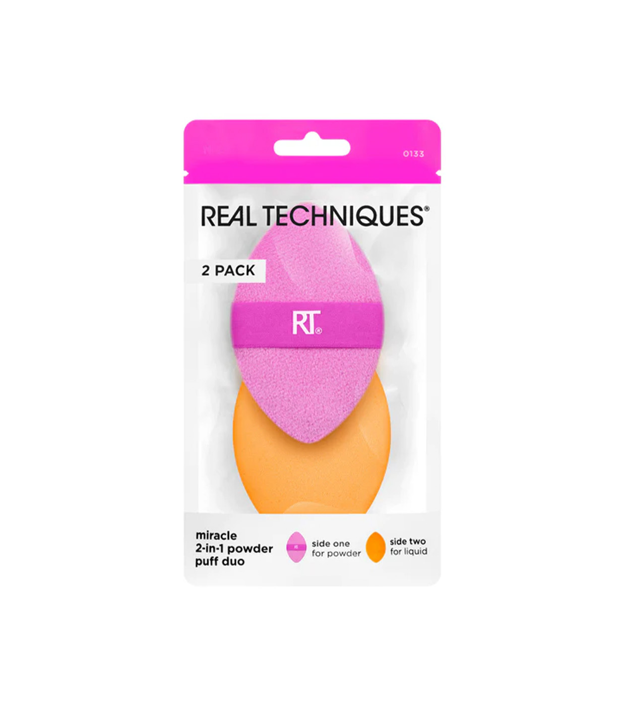 Real Techniques Miracle 2-in-1-Puderquaste ist eine vielseitig verwendbare Make-up-Quaste mit doppelter Textur, die für die Verwendung mit Pudern, Flüssigkeiten und Cremes entwickelt wurde, um eine glatte, perfekt fixierte Grundierung zu erzielen.