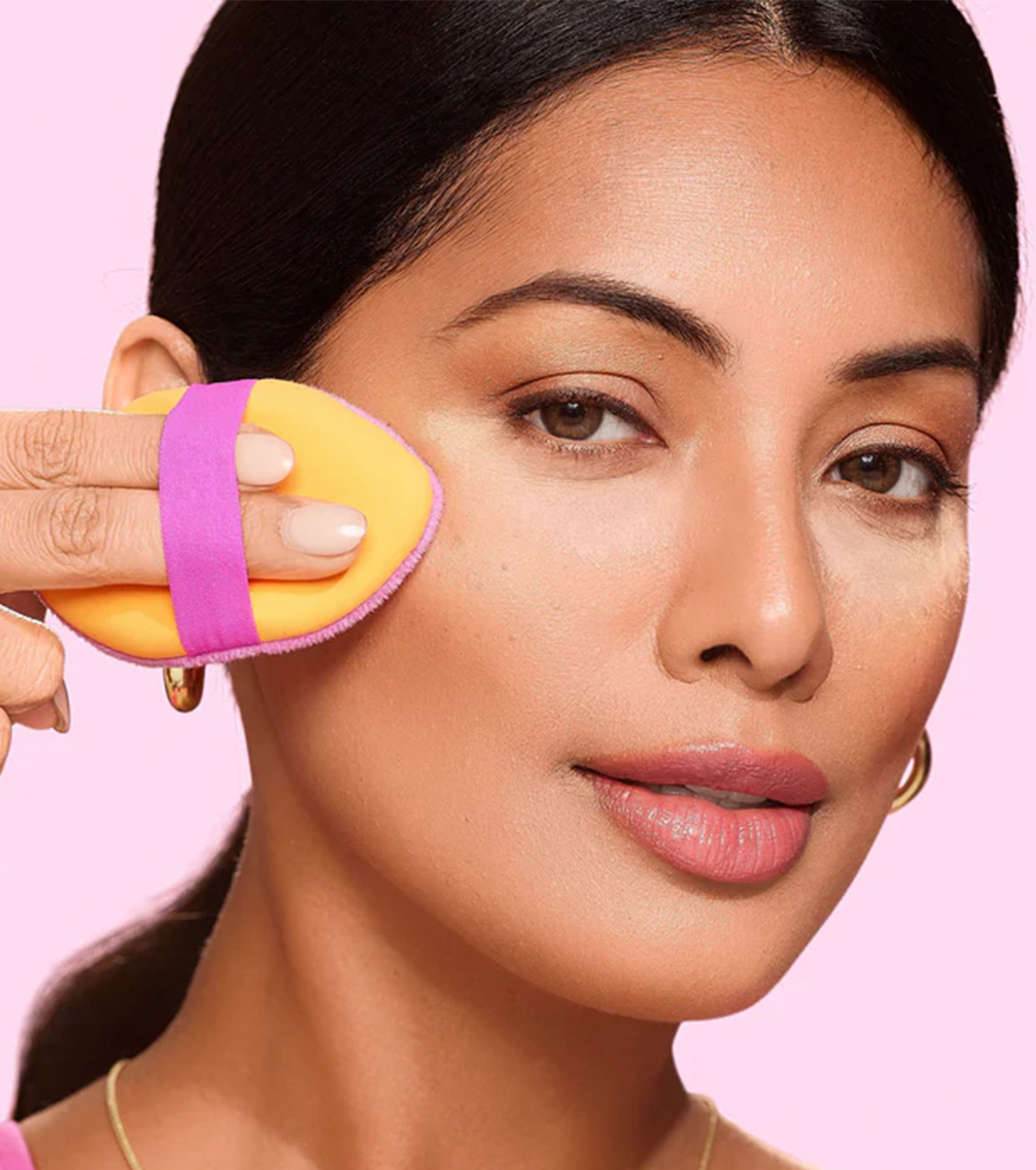 Die rosafarbene Oberfläche eignet sich perfekt für Ausbesserungen im Laufe des Tages und verfügt über neue Plüschfasern, die genau die richtige Menge jedes Puderprodukts aufnehmen und auftragen, um Ihre Grundierung zu fixieren oder Ihr Make-up aufzufrischen.
