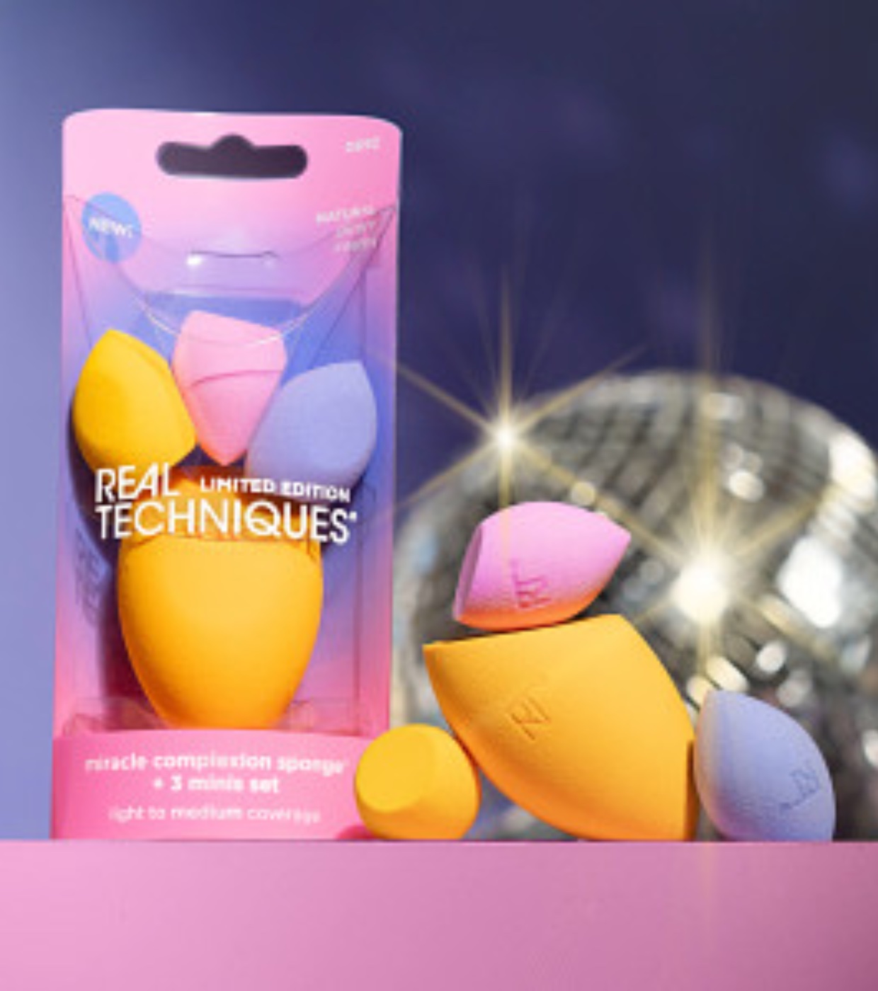 Das Set Real Techniques Night brights Miracle Complexion Sponge + 3 Mini Sponges enthält Ihren Lieblings-Make-up-Schwamm in jeder Größe, die Sie für einen natürlichen Look benötigen.