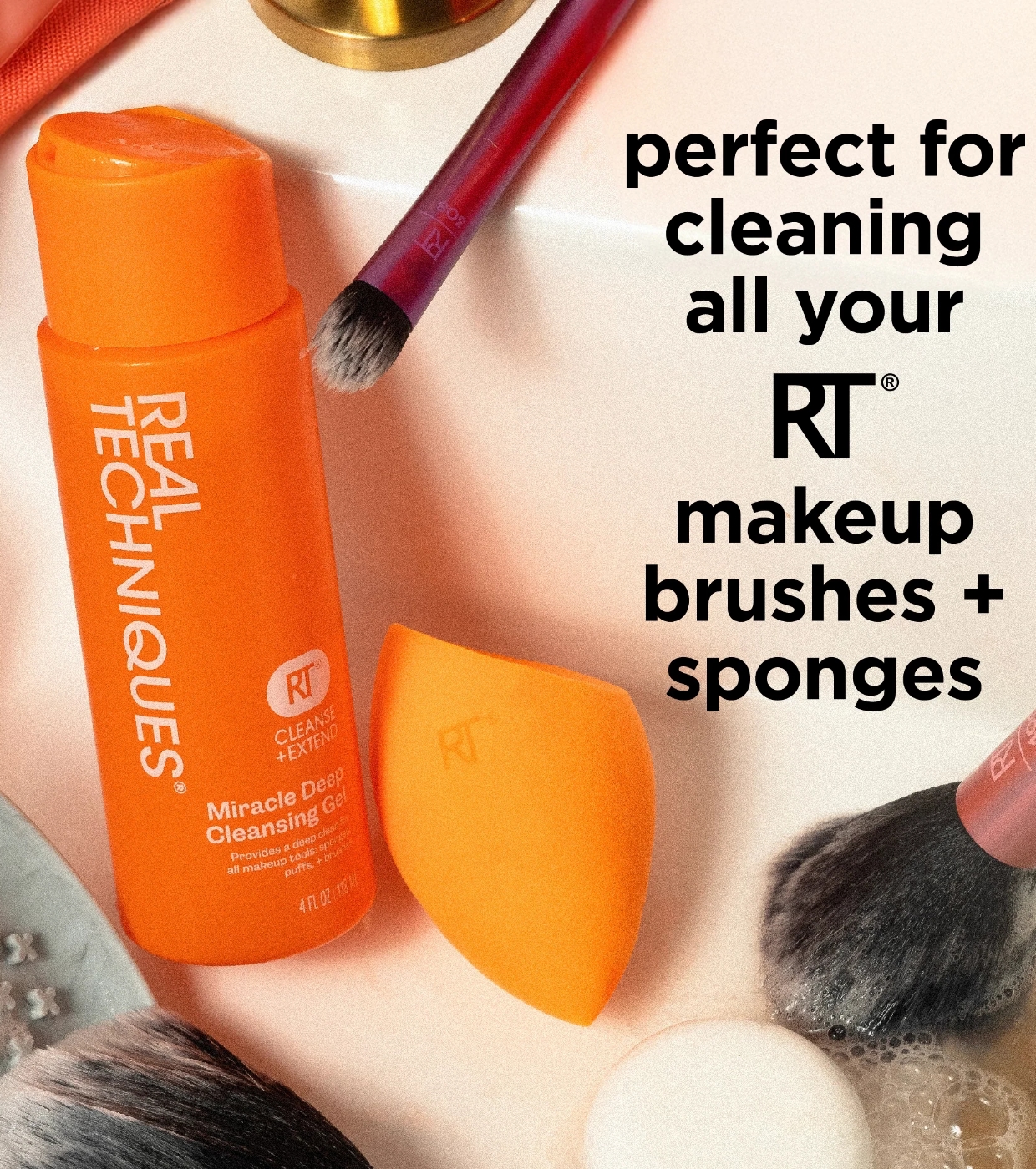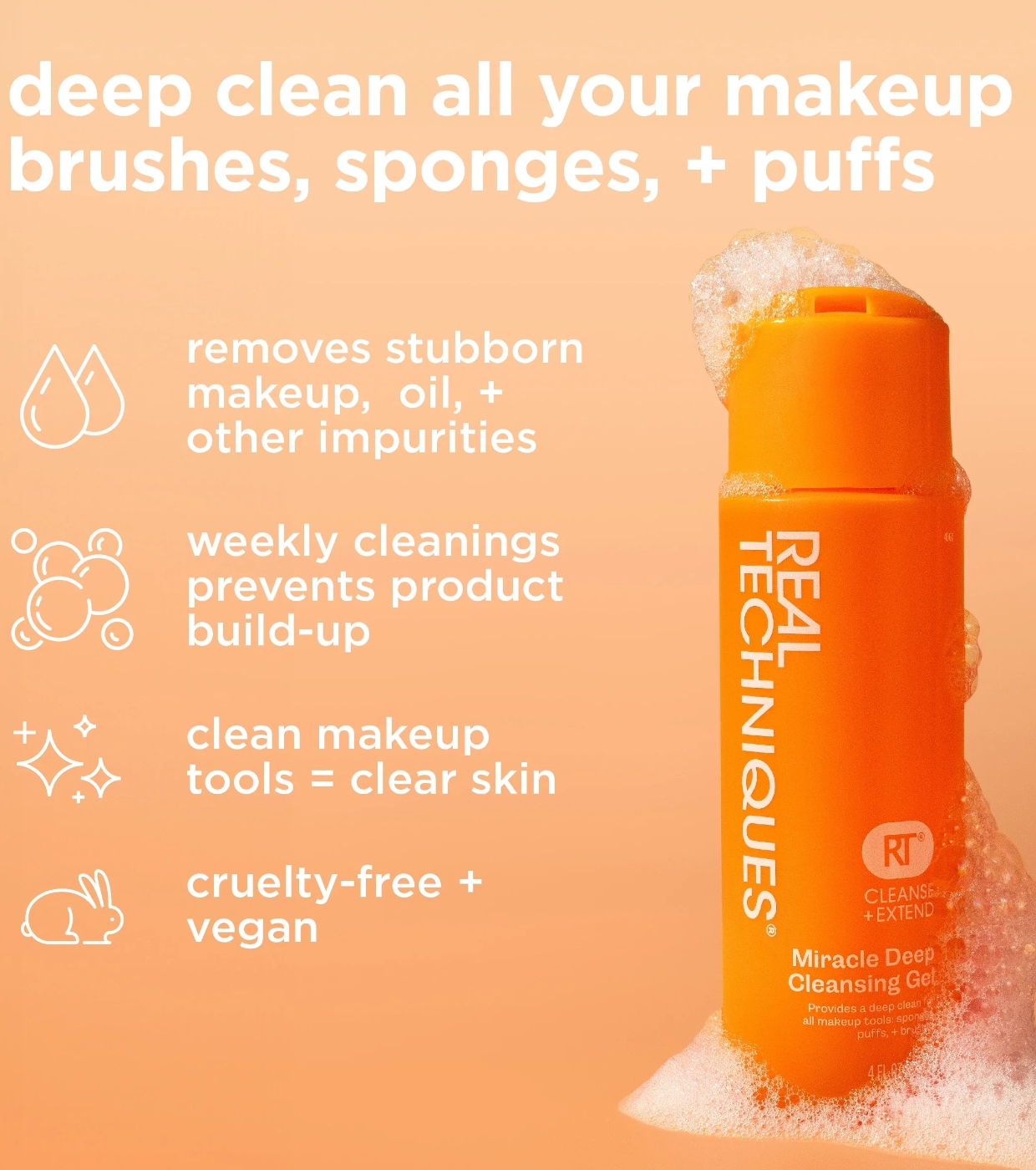 Dieser Reiniger ist Teil der RT Cleanse + Extend Kollektion, die Ihnen dabei helfen soll, Ihre Werkzeuge mit der gleichen Sorgfalt zu pflegen wie Ihre Haut.