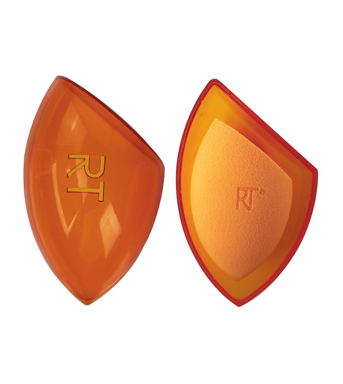Dieser Schwamm von Real Techniques hat ein Design, dessen abgerundete Seite Make-up über das ganze Gesicht verteilt, dessen Spitze Unvollkommenheiten abdeckt und dessen flache Kante um Augen und Nase herum verwendet wird.