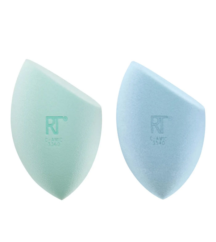 Das Real Techniques Summer Haze Collection Set enthält zwei Make-up-Schwämme, die sich ideal zum Auftragen von Flüssig- und Puderprodukten eignen.