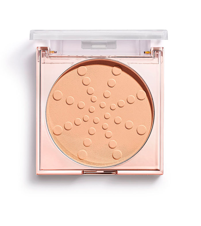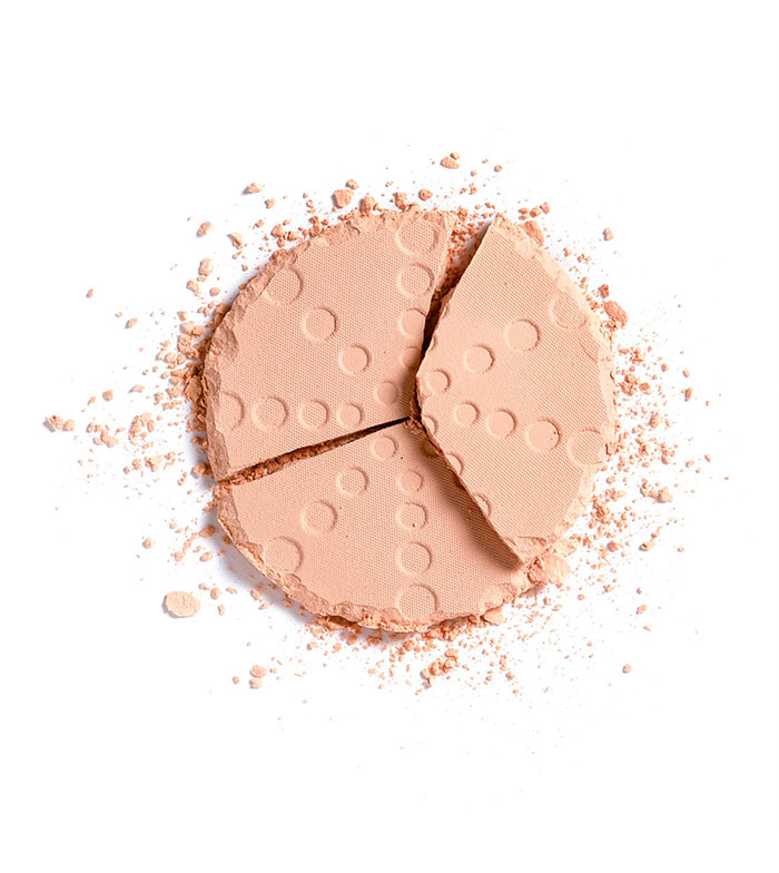 Presspulver, formuliert, um ein mattes Finish zu erzielen und das Aussehen von Glanz und Poren zu beseitigen.