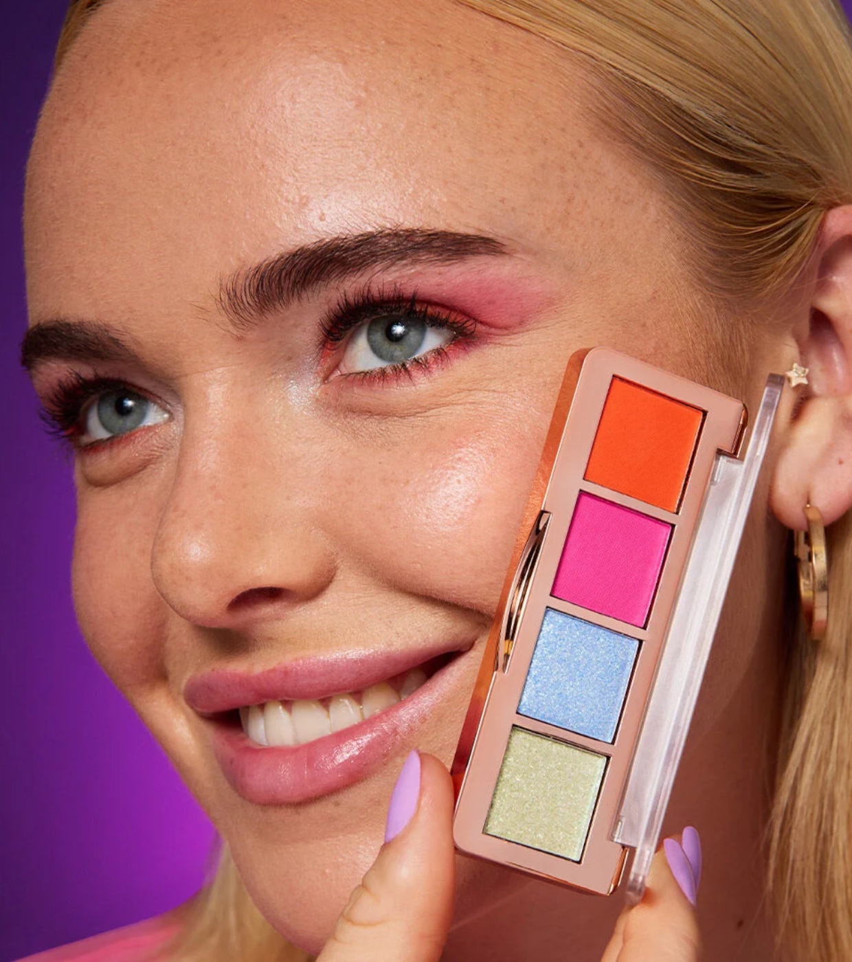 - Leuchtende Farbtöne für Wangen, Lippen und Augen.