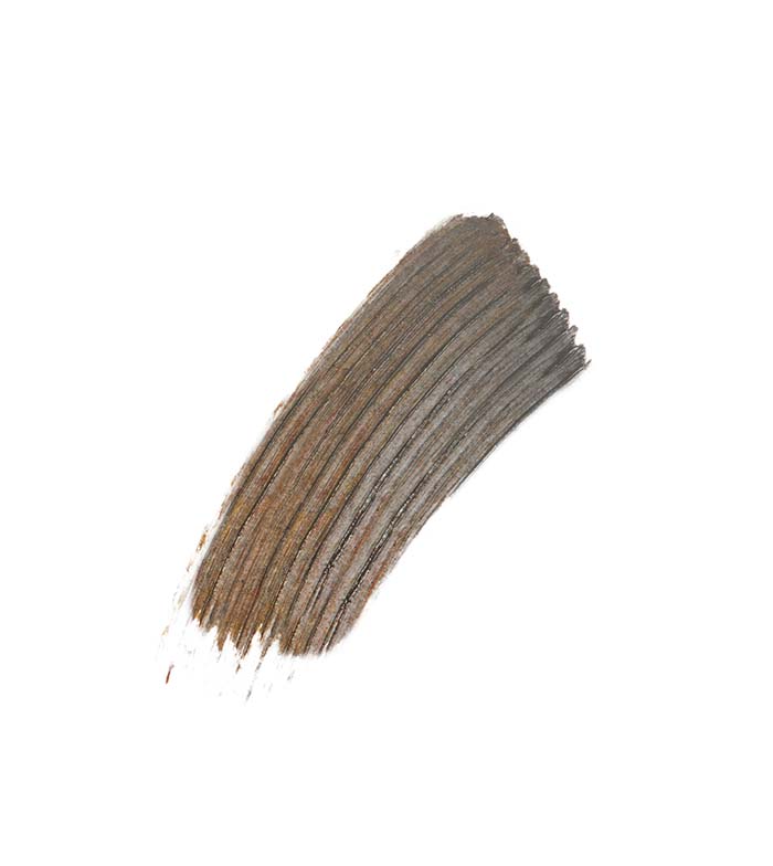 Seine Creme-Formel wird in einem Grauton aufgetragen und passt sich nach dem Verblenden mit dem Applikator einer natürlich aussehenden Brauenfarbe an.
