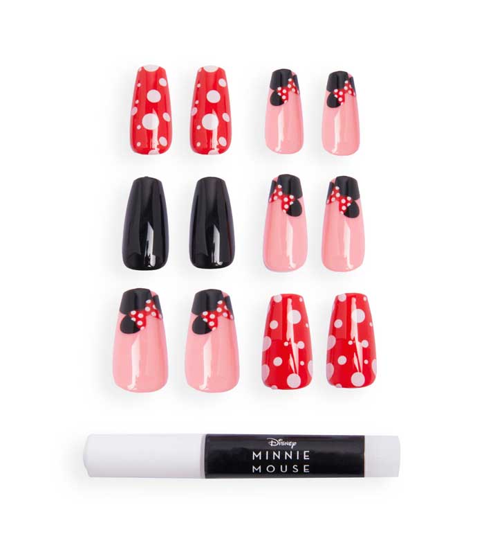 Holen Sie sich die süßesten Krallen mit dieser Packung mit 24 falschen Nägeln mit Minnies ikonischen Ohren, Schleifen und Tupfen.