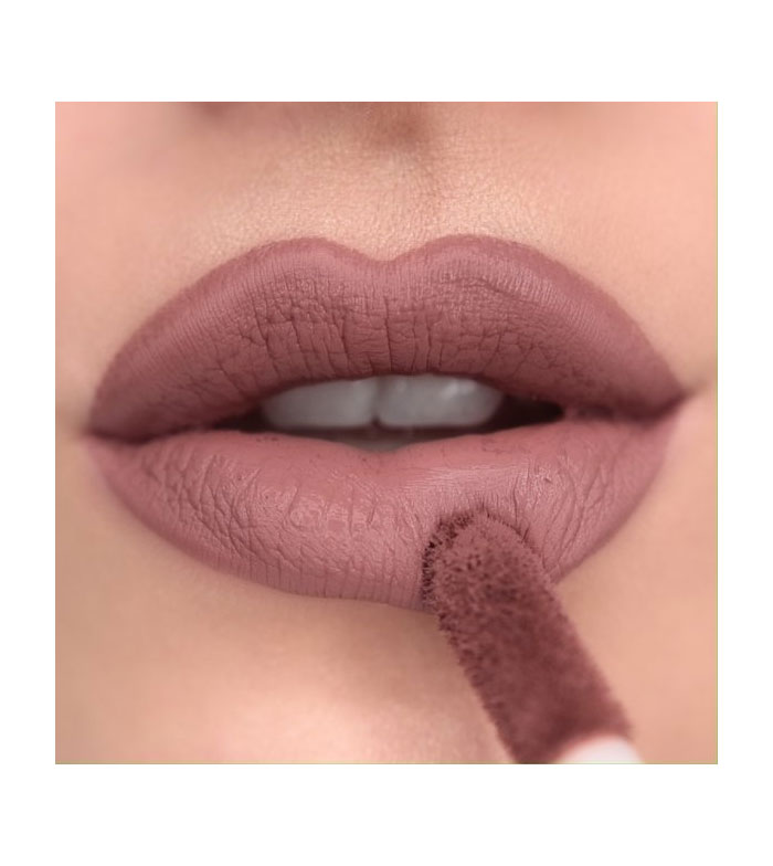 Delicate Brown ist ein kussfester flüssiger Lippenstift aus der Matte Bomb- Reihe von Revolution.