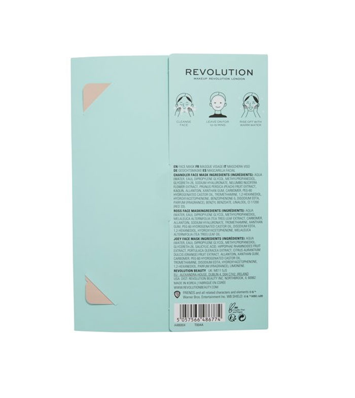 Packung mit 3 Stoffgesichtsmasken aus der Friends X Revolution -Kollektion.