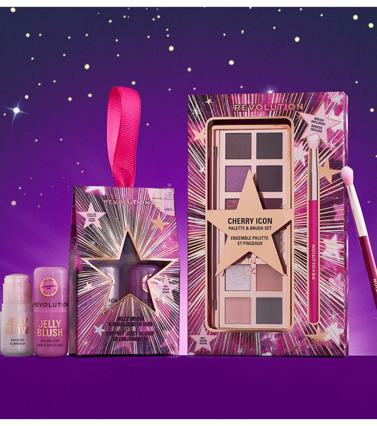 Die Lidschattenpalette und das Pinselset Revolution Cherry Icon sind Ihre beste Wahl, um die ganze Saison über perfekte Party-Augen-Looks zu kreieren.