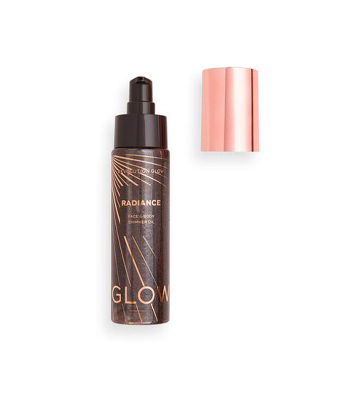 Schüttle es und strahle! Revolution Face und Body Radiance Shimmer Body Oil verleiht Ihnen einen atemberaubenden Glanz, der mit einem Duft aus Kokosnuss und Ananas angereichert ist.