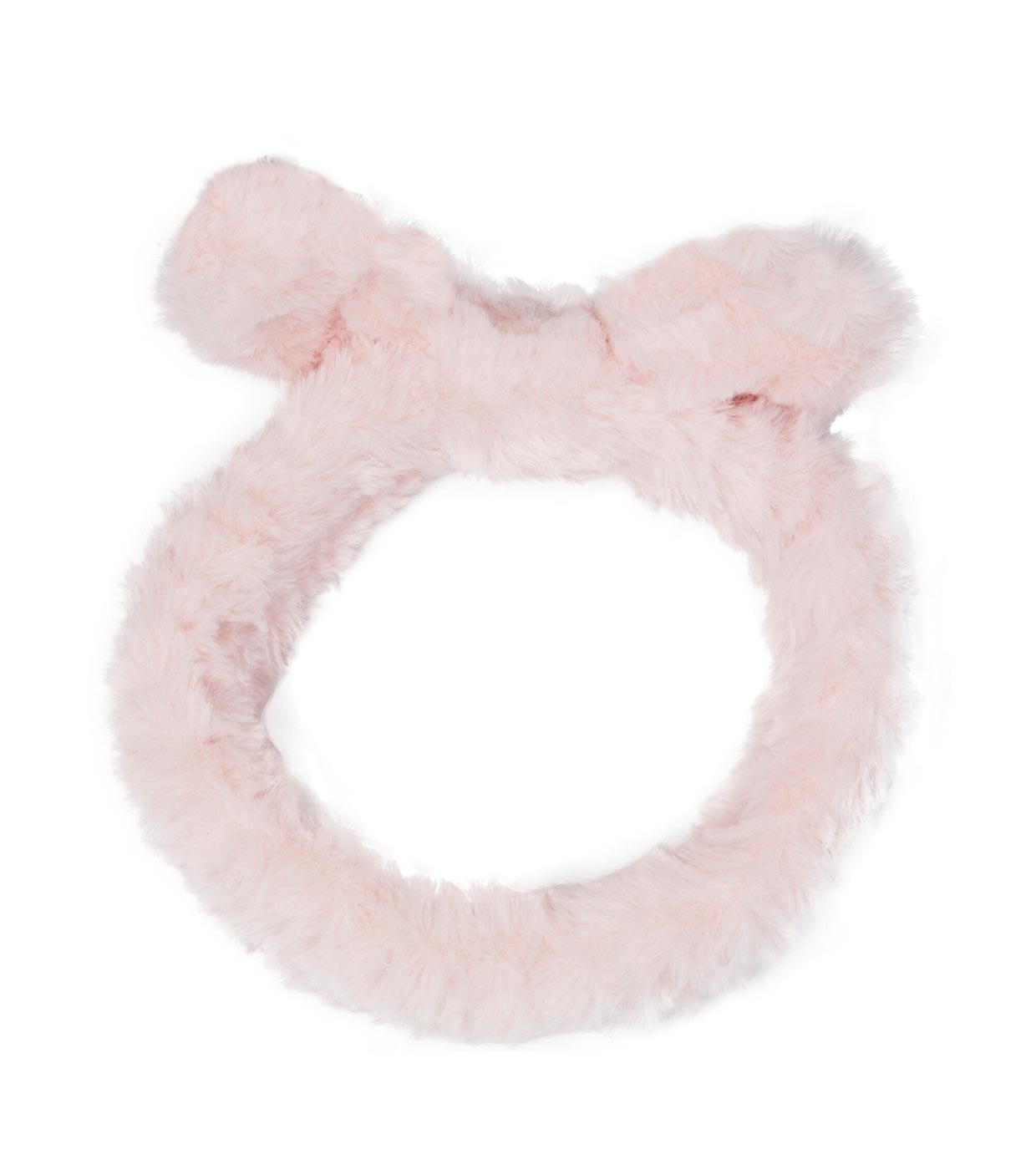 Ein Hautpflege-Stirnband mit weichem und flauschigem hellrosa Design, das Ihnen hilft, Spa-Vibes zu Hause zu erleben.