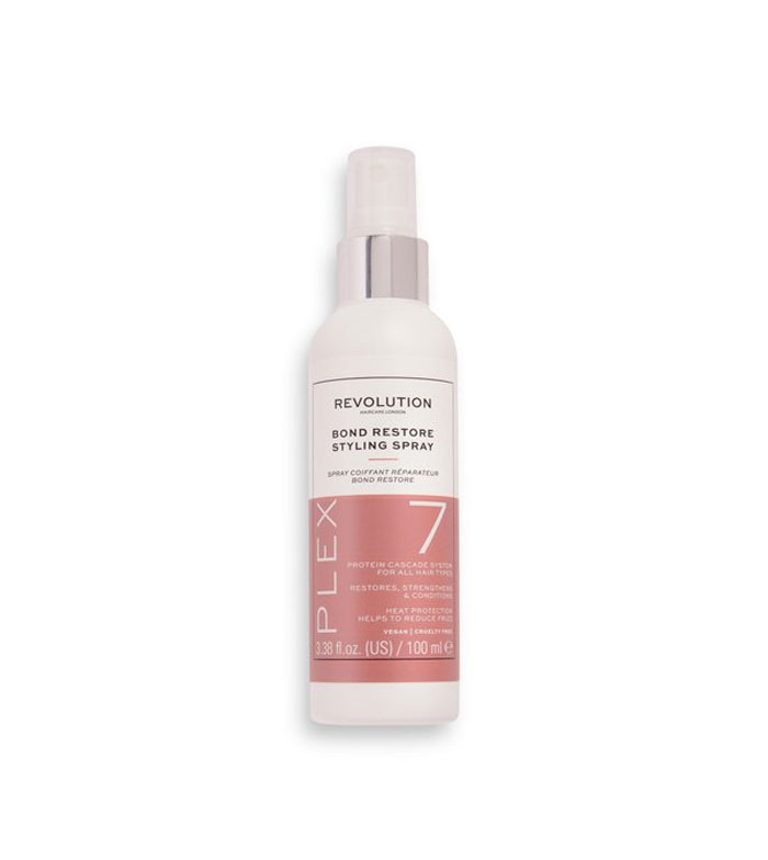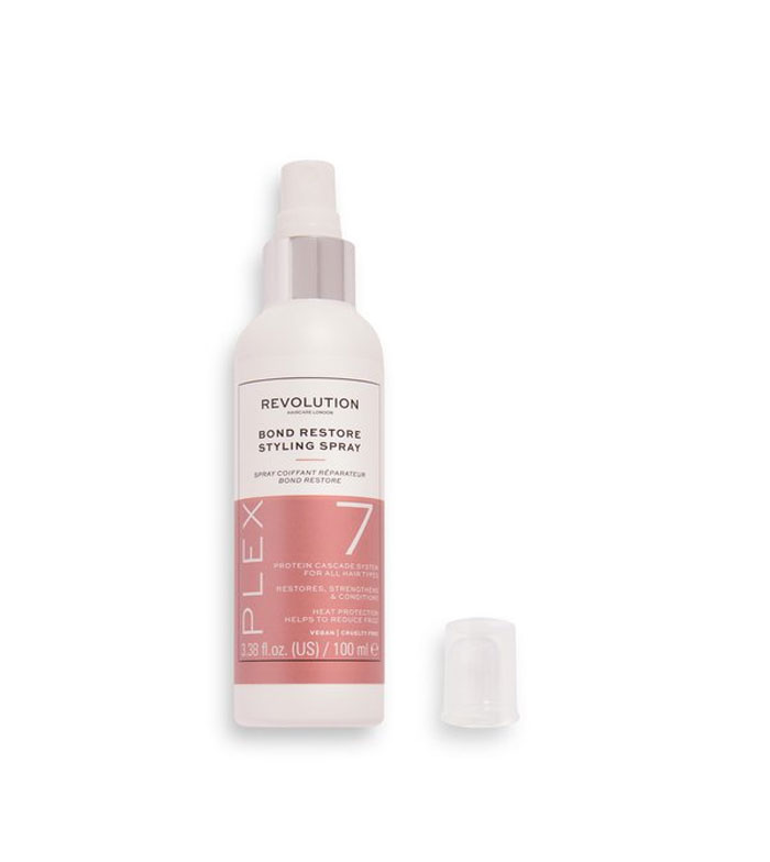 Das Plex 7 Bond Restore Hair Repair Spray von Revolution Haircare hat eine leichte Formel, die vor Hitze schützt und Kräuselungen reduziert.