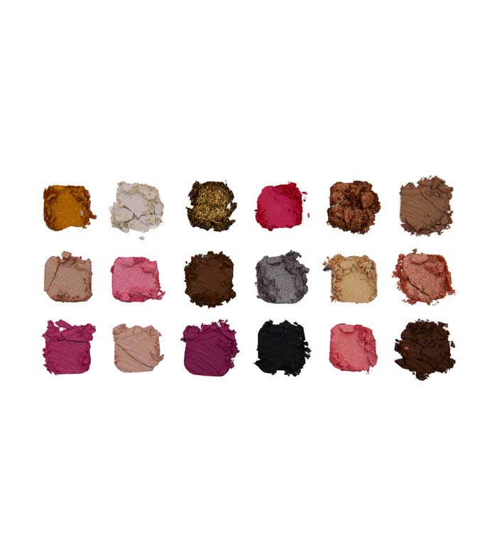 Diese Palette enthält 18 Lidschatten mit matten, schimmernden und metallischen Finishes in Rosa-, Gold- und Brauntönen.