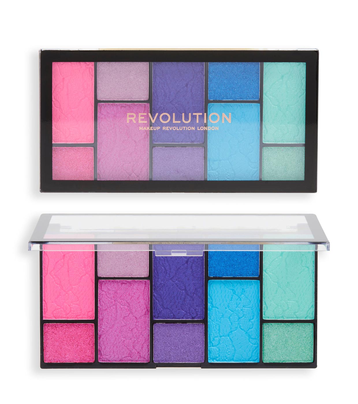 Die Reloaded Dimension Lidschatten-Palette von Revolution enthält ikonische, hochpigmentierte und erschwingliche Lidschatten in einem völlig neuen Palettenformat.