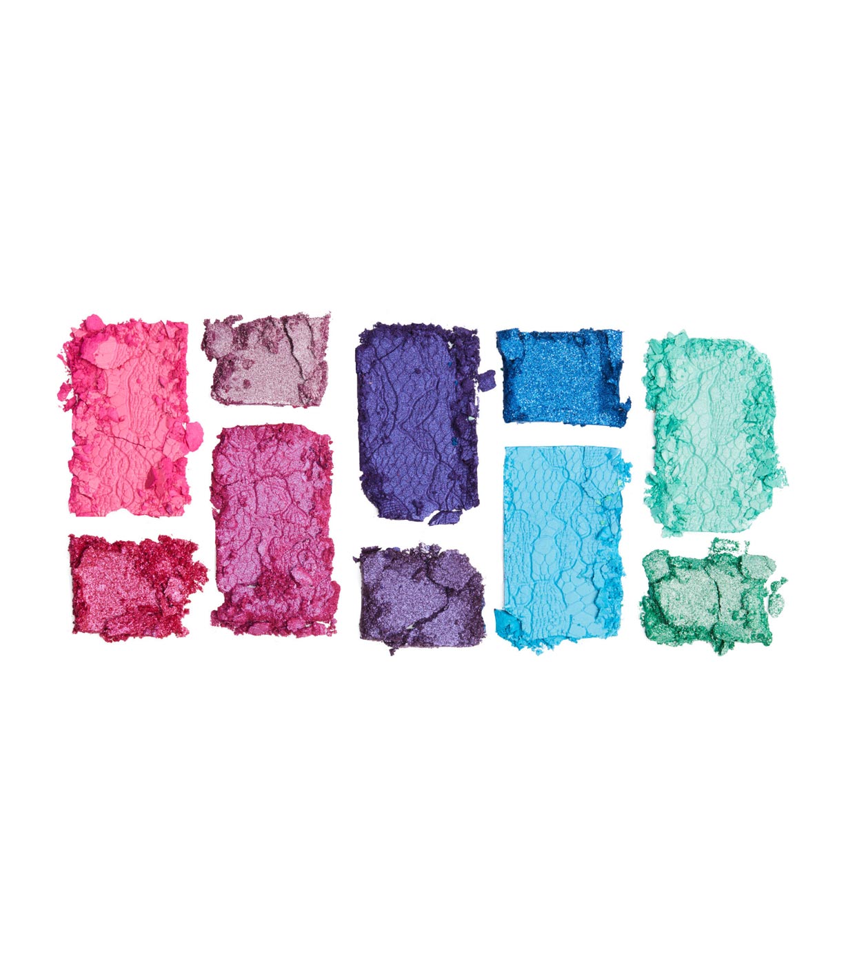 Diese superfarbenfrohe Lidschatten-Palette besteht aus 10 Farbtönen, von satten Blau- und Rosa-Matttönen bis hin zu Lila- und Grünschimmern.