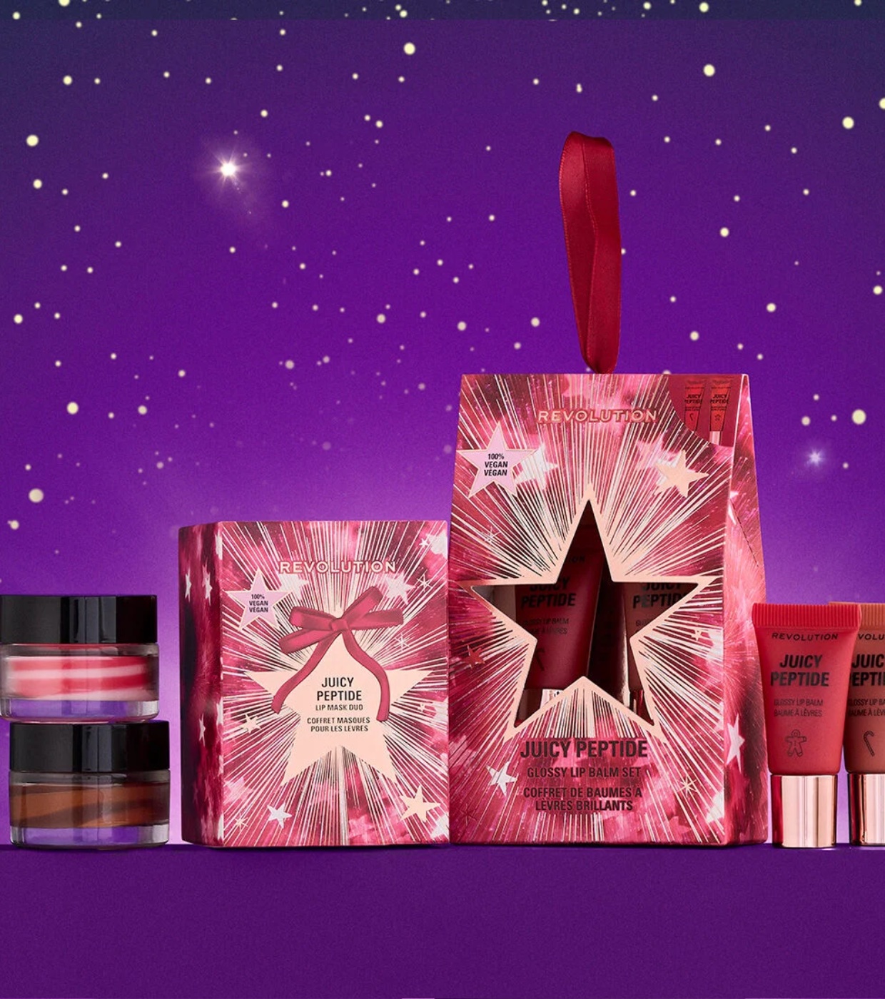Ihre Lieblingsbalsame von Juicy Peptide, jetzt mit einer festlichen Note mit dem Juicy Peptide Mini Lip Balm Gift Set von Revolution !