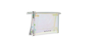 Der langlebige holografische Kulturbeutel ist durchscheinend und besteht aus einem leicht zu reinigenden Material, komplett mit einem silbernen runden Reißverschluss.