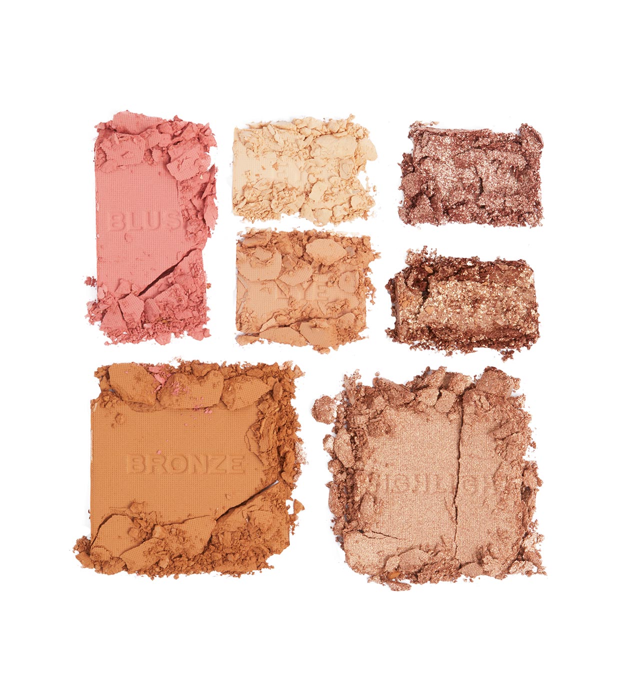 Diese Palette mit 7 Farbtönen für Augen, Gesicht und Wangen – enthält 4 Lidschatten, 1 Puder-Rouge, 1 Puder-Highlighter und 1 cremigen Puder-Bronzer – alles in einer Deluxe-Reisepalette – alles, was Sie brauchen! An einem einzigen Ort!