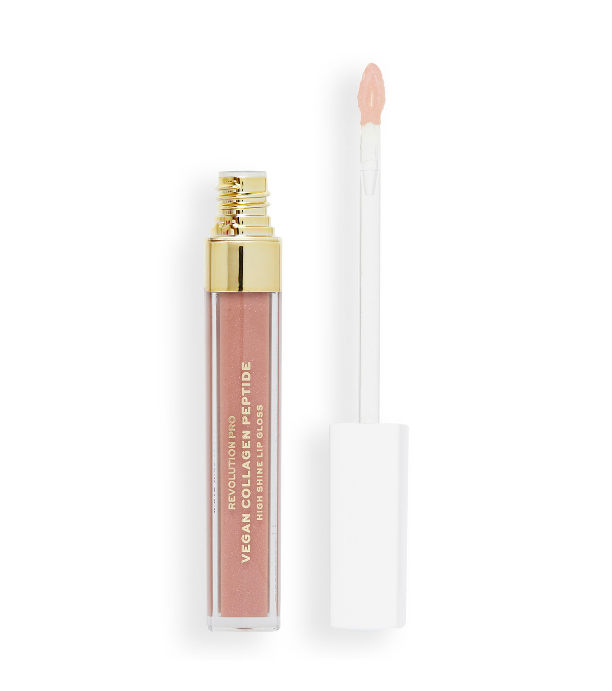 Pflegen und befeuchten Sie Ihre Lippen mit Revolution Pro Vegan Collagen Peptide High Shine Lip Gloss.