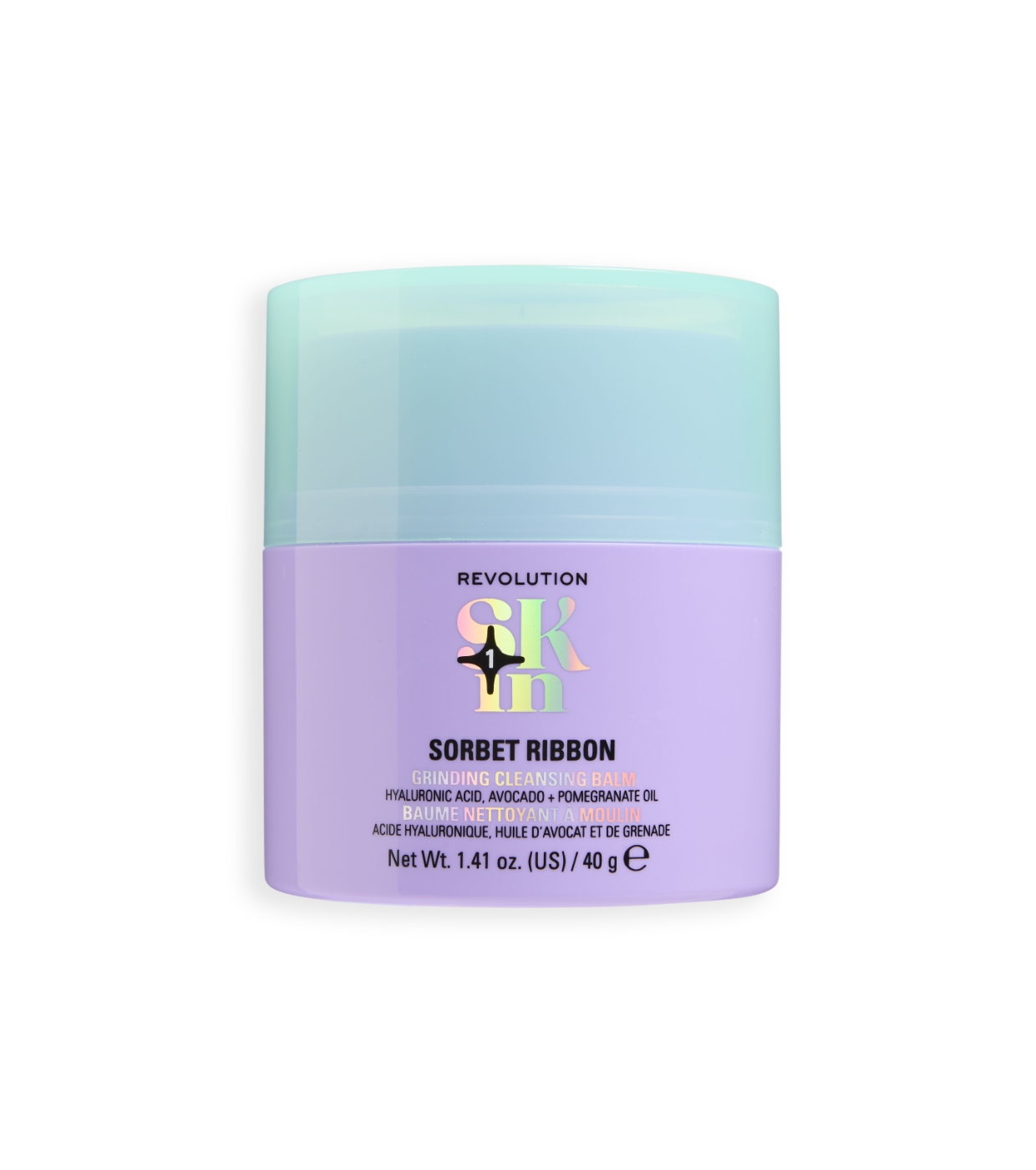 Entdecken Sie Sorbet Ribbon von Revolution Skin , den Gesichtsreiniger, der sich von einem Balsam über ein Öl zu einer Milch verwandelt und Make-up, Sonnenschutzmittel und Unreinheiten effektiv entfernt, während er die Haut mit Feuchtigkeit versorgt, weich macht und ihr einen saftigen Glanz verleiht.