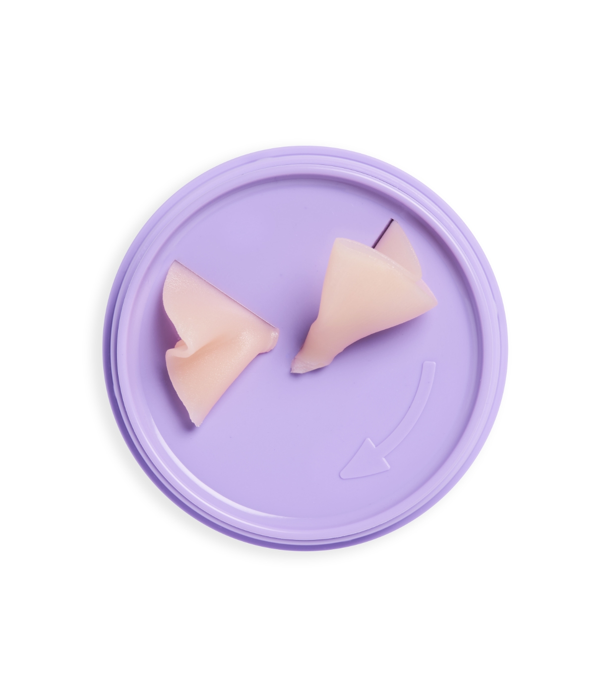 Den Behälter umdrehen und eine kleine Menge auf die trockene Haut auftragen. Sanft einmassieren, um das Produkt zu schmelzen und Make-up zu lösen. Wasser hinzufügen, um es zu emulgieren, und mit Wasser oder einem Reinigungstuch abspülen.