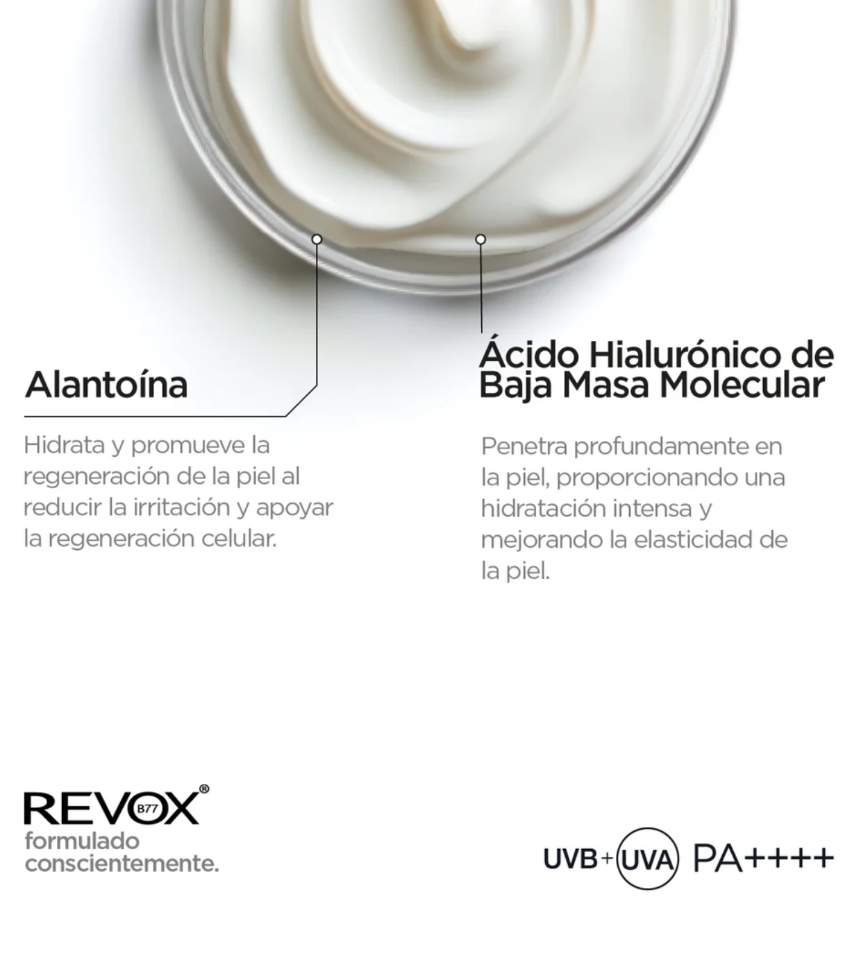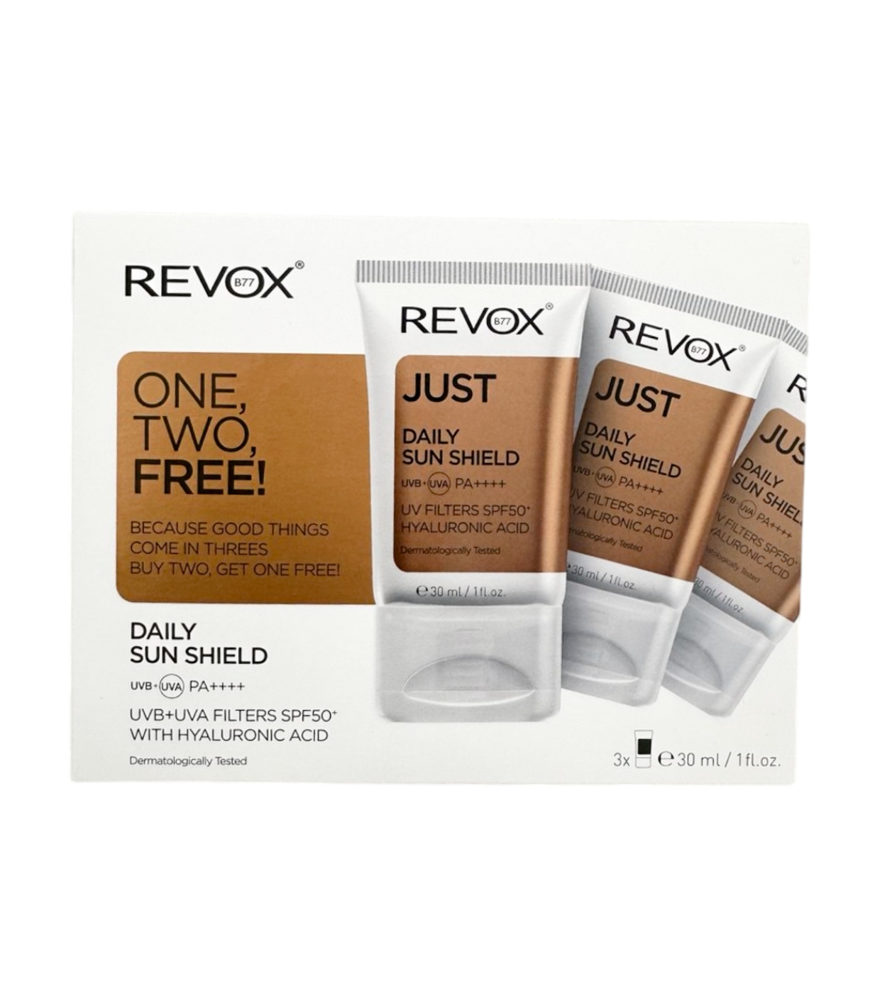 Genießen Sie jeden Tag geschützte Haut mit dem 3er-Pack Sonnenschutzmittel SPF50+ mit Hyaluronsäure von Revox B77 .