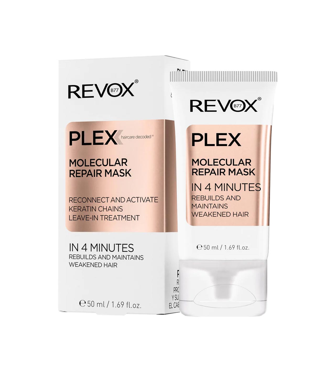 REVOX B77 PLEX Molecular Repair Mask ist eine innovative Haarrekonstruktionsformel, die das Aussehen jeder Strähne verändert und die Auswirkungen von Schäden rückgängig macht.