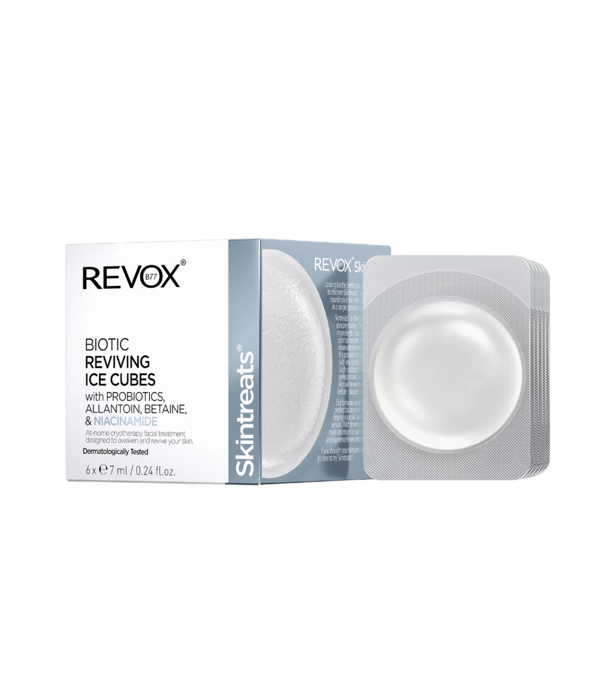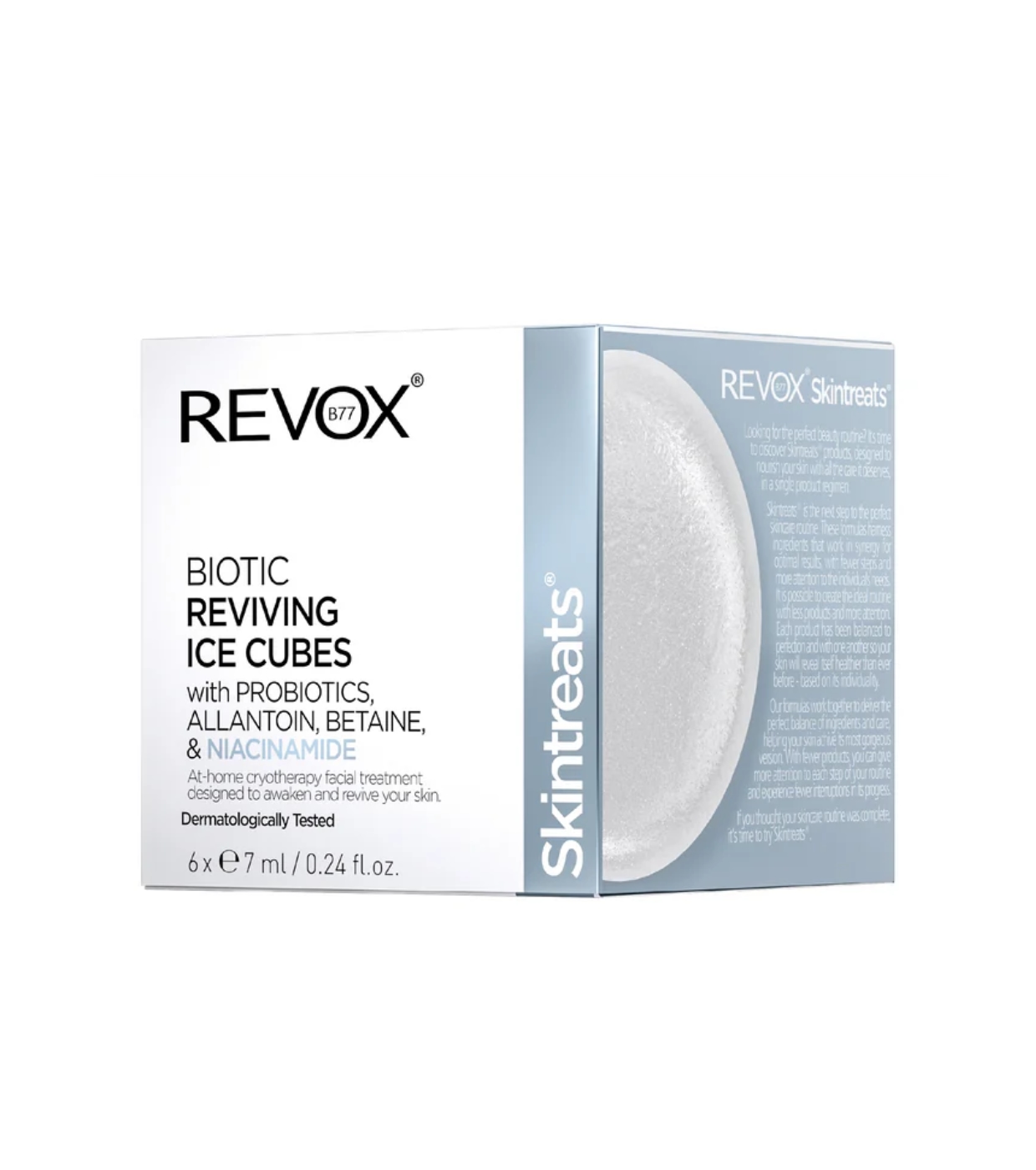 Genießen Sie eine Kryotherapie-Behandlung bequem von zu Hause aus mit den revitalisierenden Ice Cubes aus der Skintreats-Reihe von Revox , die Ihre Haut revitalisieren und ihr ein frisches und erneuertes Aussehen verleihen sollen.