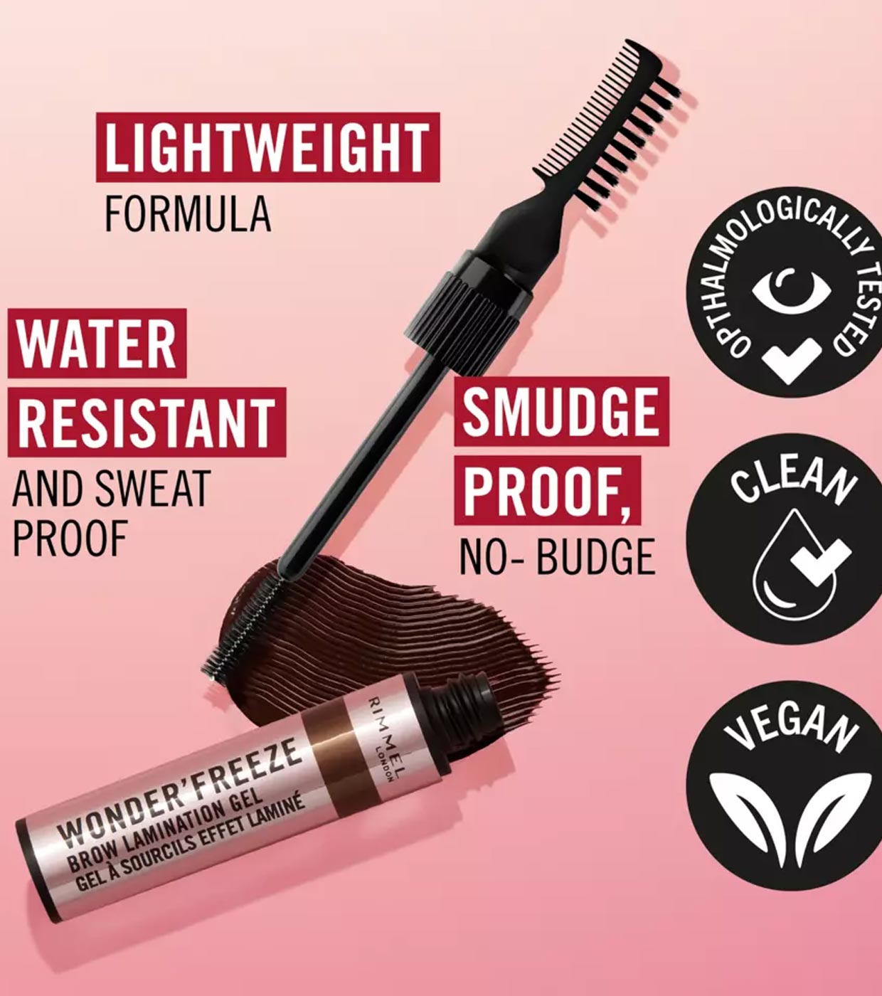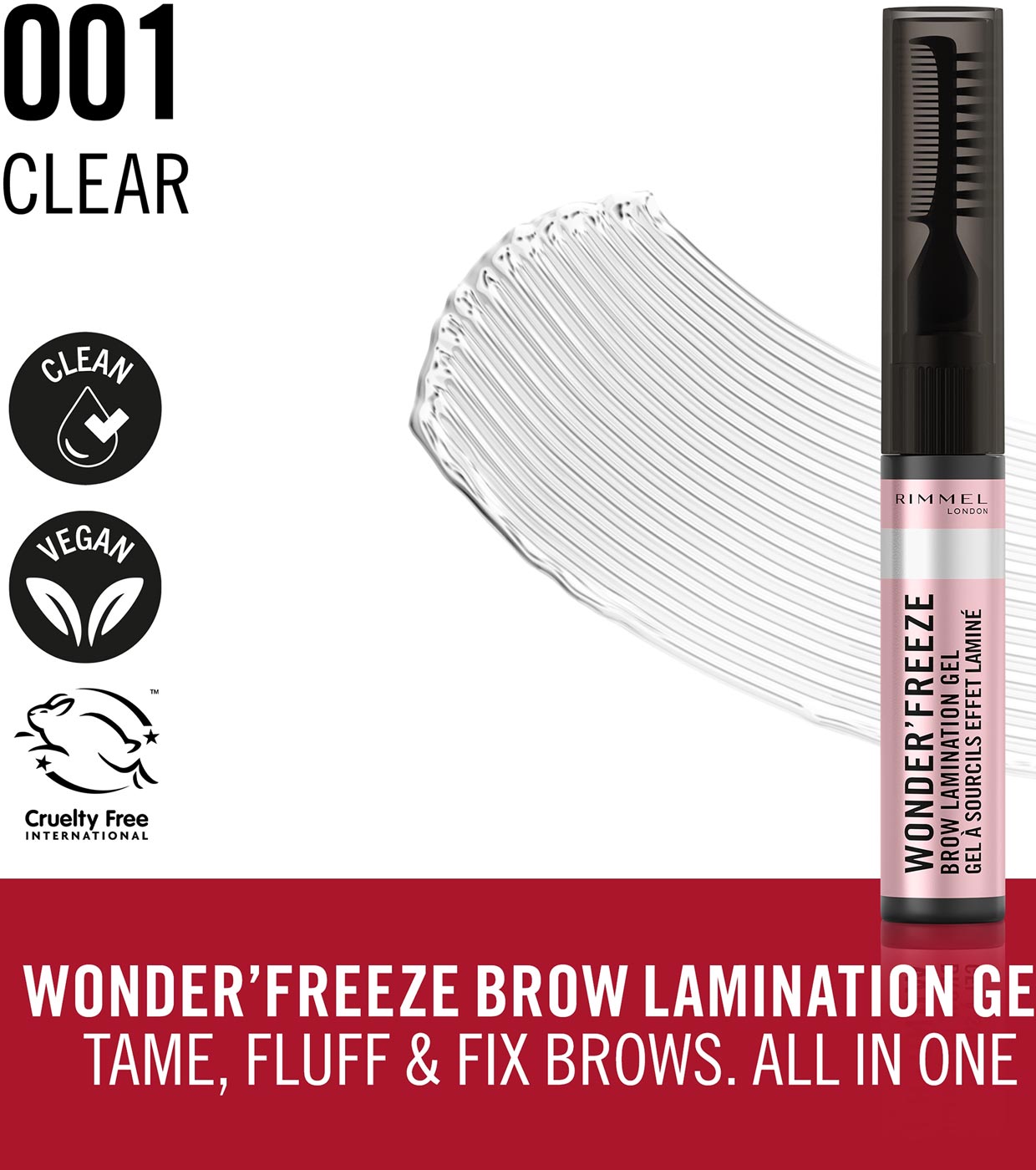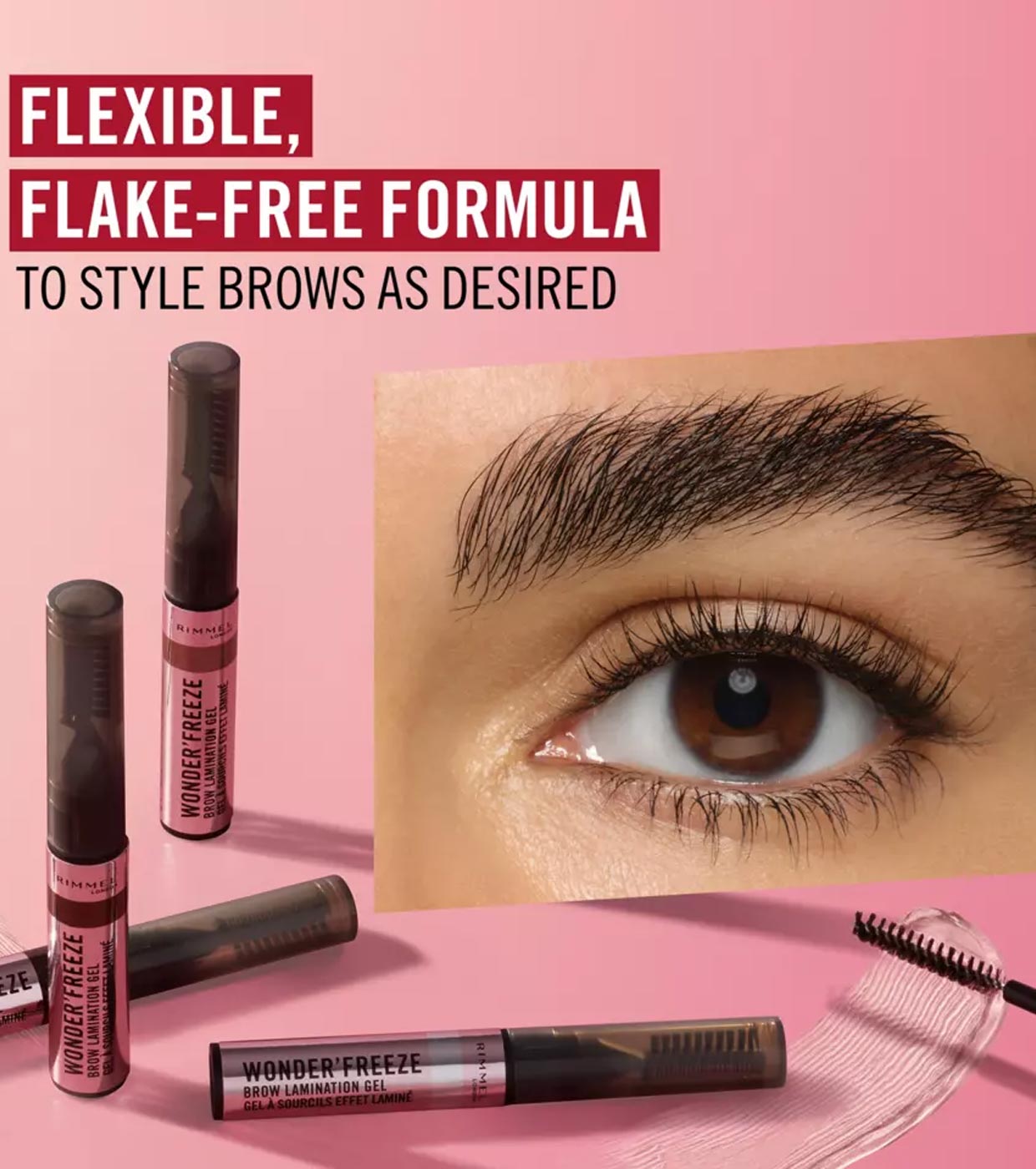 Zähmen, stylen und fixieren Sie Ihre Brauen, alles in einem mit dem Wonder'Freeze Brow Laminating Gel von Rimmel!