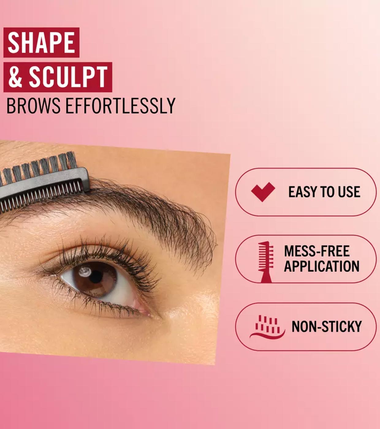 Der Formkamm und die Bürste formen die Brauen gleichmäßig und sorgen für eine nicht klebrige, saubere Anwendung.