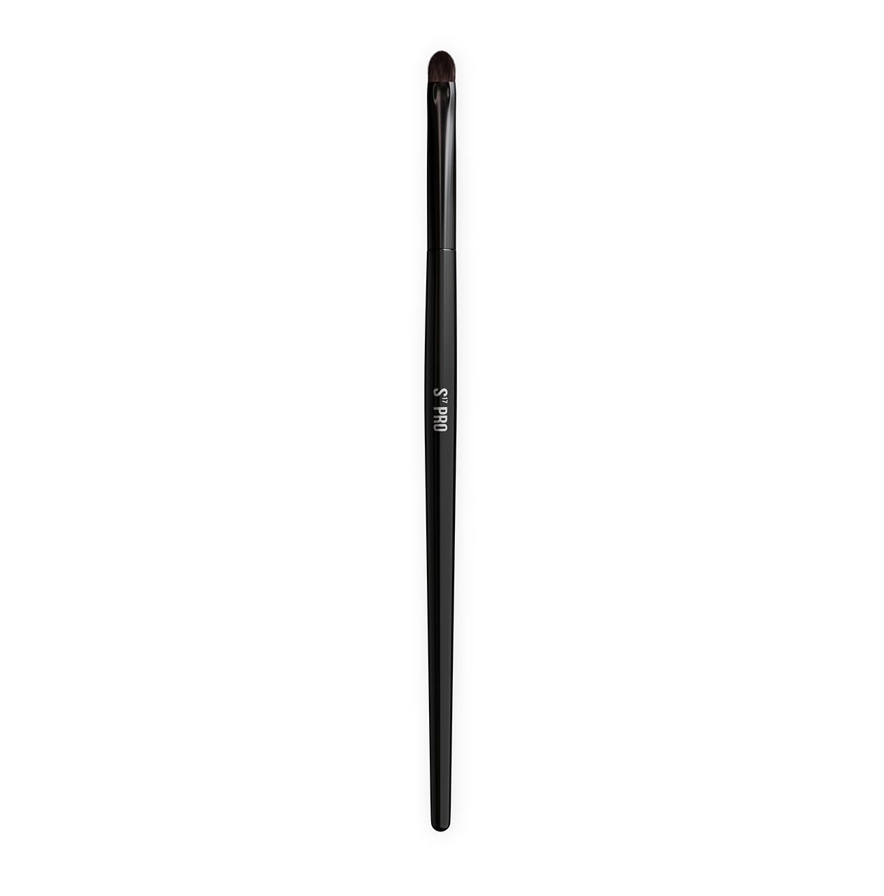 Seine flache, abgerundete, katzenzungenartige Form ermöglicht eine detaillierte Arbeit an bestimmten Bereichen wie dem Augenlid, dem Tränenkanal oder der Lippenkontur und das Auftragen von Puder- oder Cremeprodukten mit maximaler Definition.