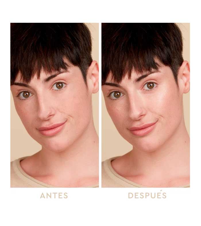 Darüber hinaus hat seine Zusammensetzung aus Oliven-, Rosmarin- und Jojobaöl antioxidative Eigenschaften für Ihre Haut, so dass sie sich um sie kümmern, während sie ihr das Licht geben, das Sie suchen, sowohl in bestimmten Punkten als auch gemischt mit Ihrer Make-up-Basis.