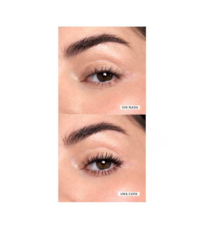 In einem intensiven ultraschwarzen Ton pigmentiert es Ihre Wimpern in einem Durchgang, während seine ergonomische Bürste hebt, krümmt, verlängert und trennt.