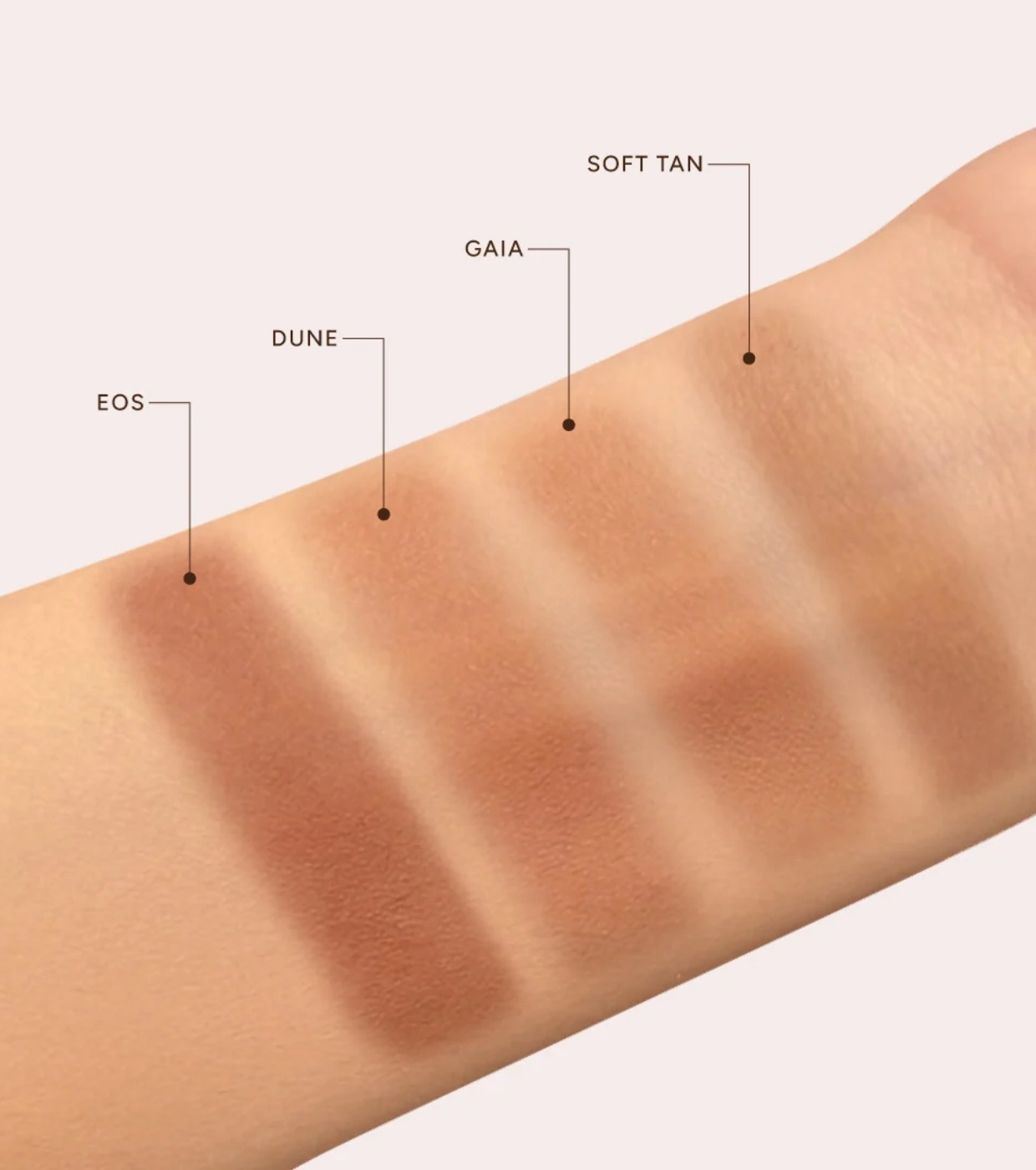 SOFT TAN: Sehr leichtes Bronzing-Puder. Neutrale Farbe. Ähnlich dem Farbton Gaia, aber etwas kühler.