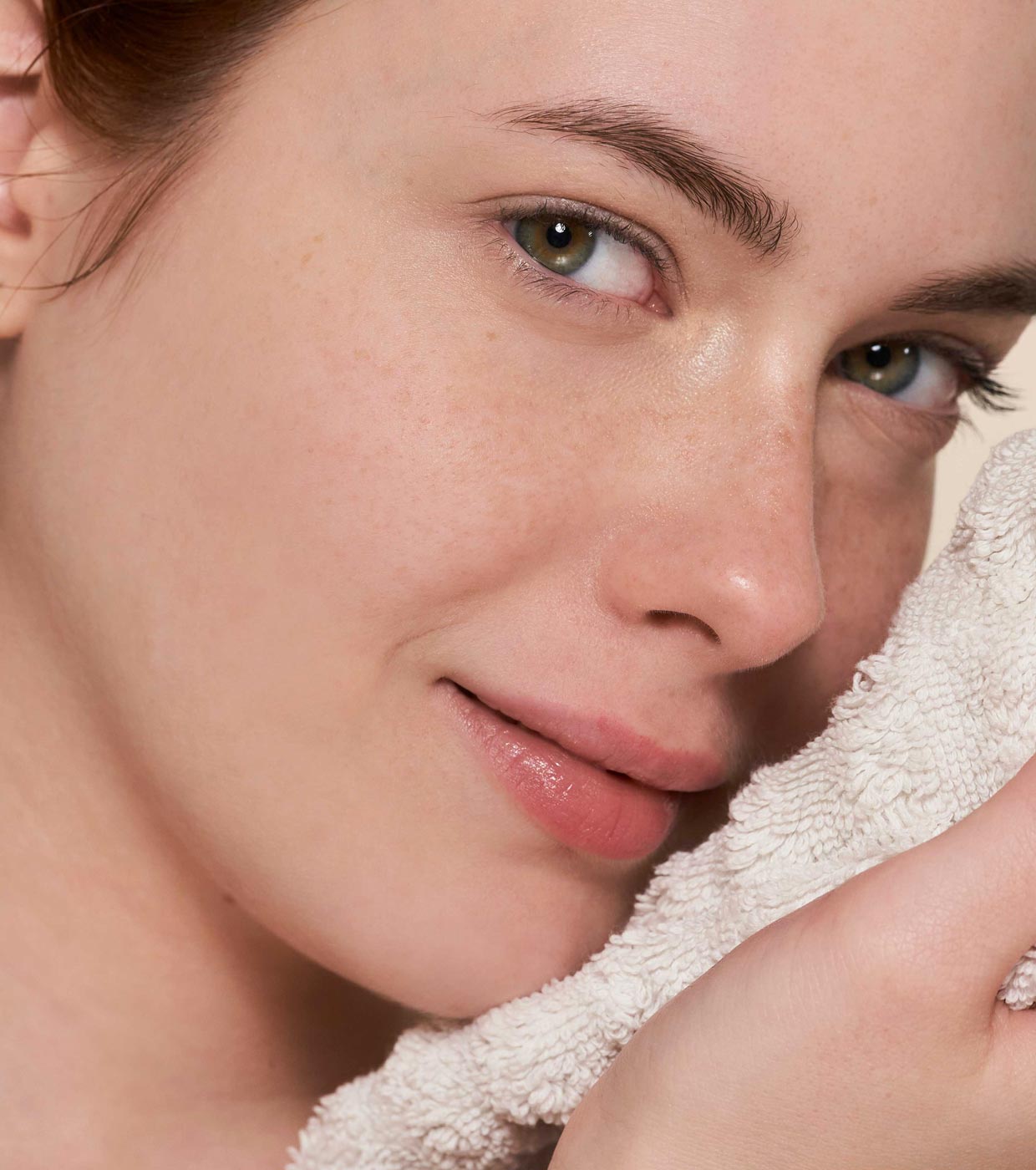 Trocknen Sie die Haut mit einem weichen Handtuch und üben Sie dabei leichten Druck aus. Voila! Bereit, mit dem Rest Ihrer Gesichtspflegeroutine fortzufahren.