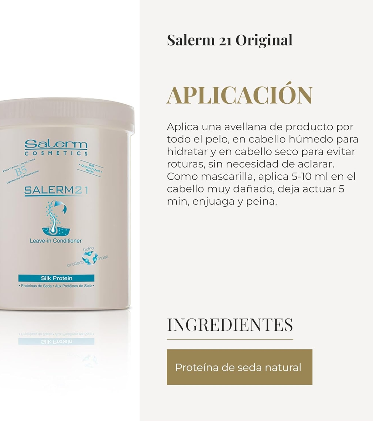 Salerm 21 Silk Protein Leave-in Conditioner Salerm 21 Silk Protein Leave-in Conditioner ist ein Leave-in-Conditioner und eine Maske, die eine Komplettlösung für trockenes, geschädigtes oder dehydriertes Haar bietet.
