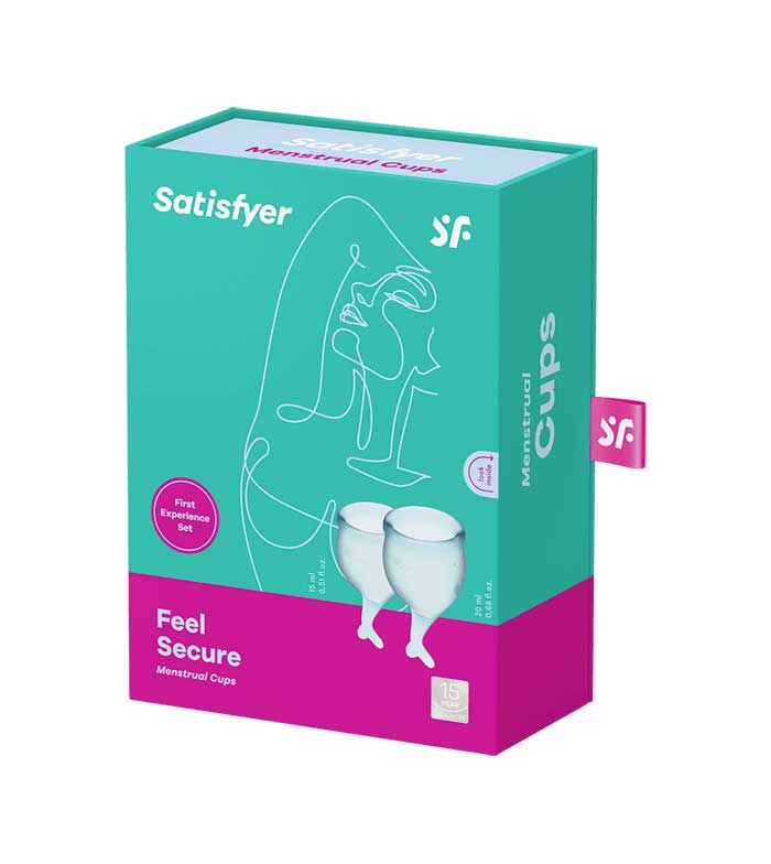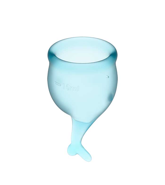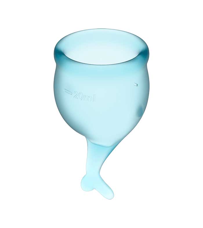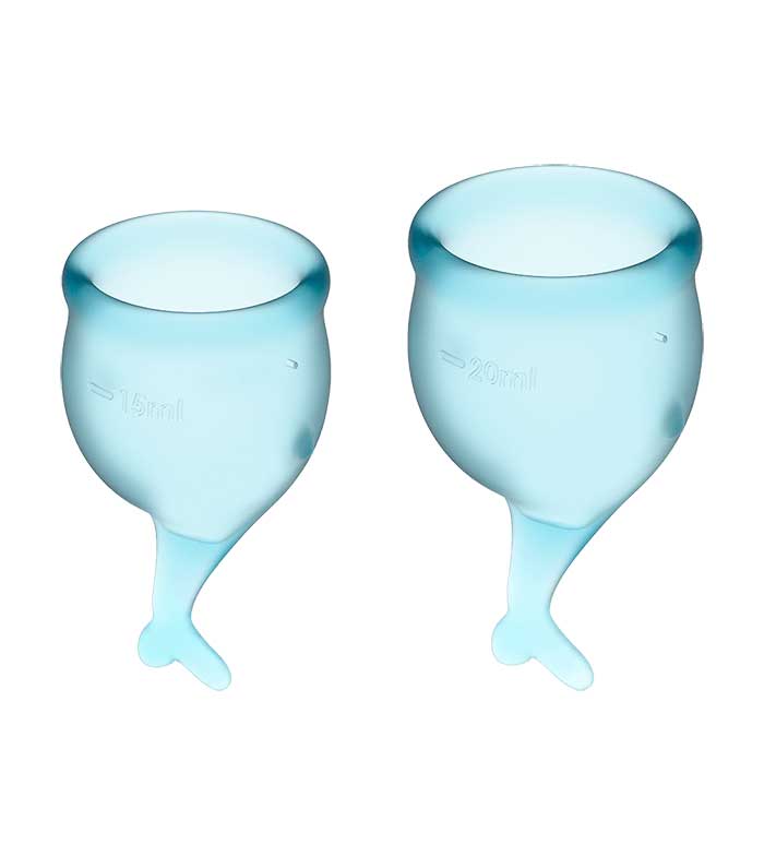 Satisfyer Feel Secure Menstruationstassen-Kit in Hellblau.