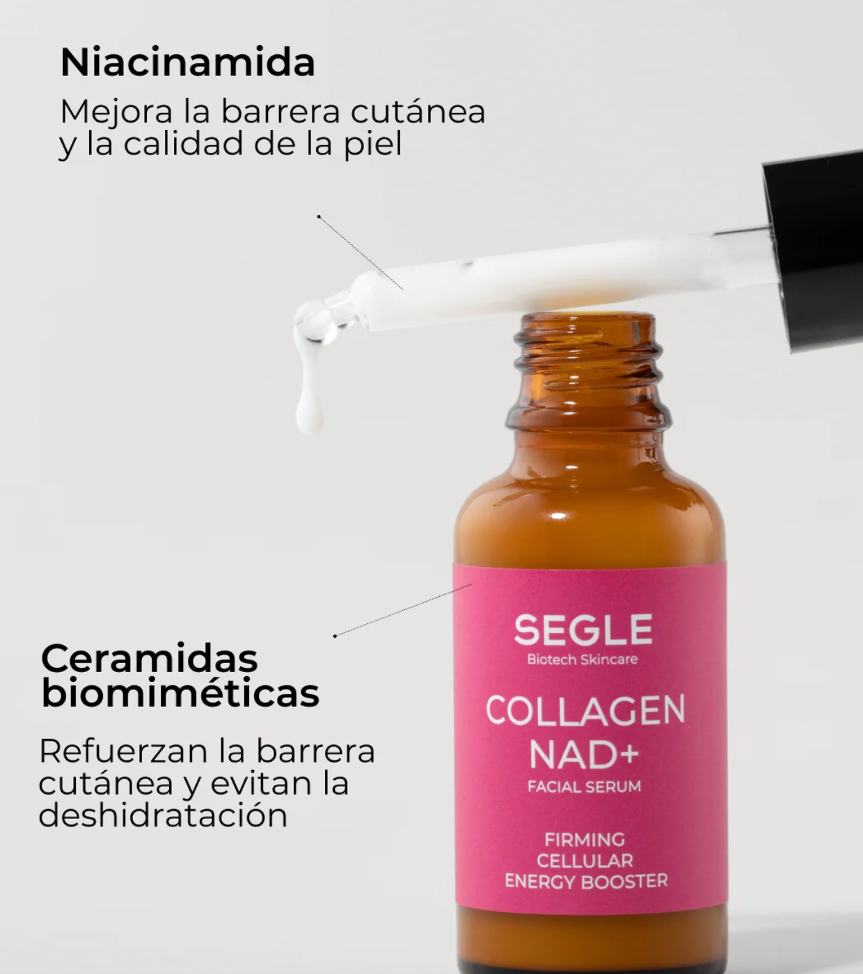 Das Collagen NAD+ Serum von SEGLE ist eine fortschrittliche, intelligente Straffungsbehandlung, die Kollagen und Zellenergie reaktiviert, die Barrierefunktion stärkt und die Langlebigkeit der Haut fördert.