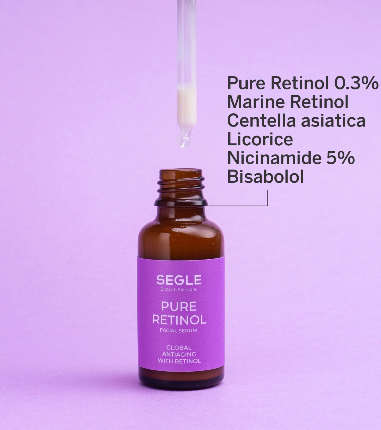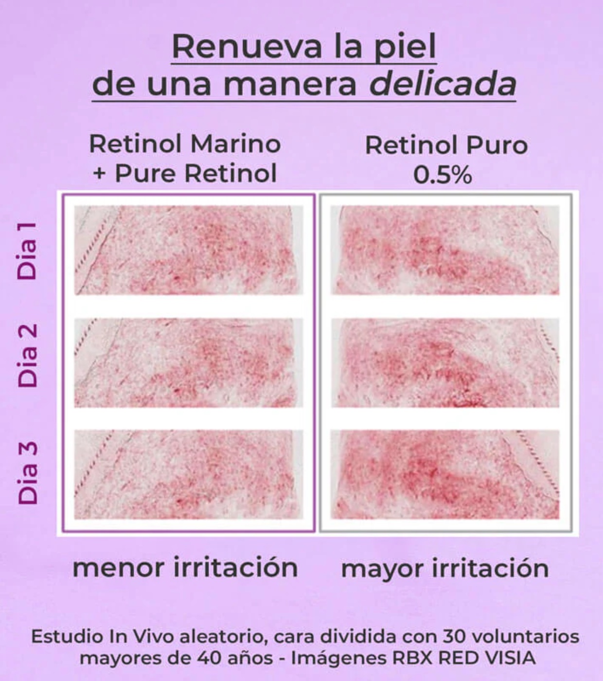 - Pure Retinol: Nachtserum wirksamer als 0,5 % reines Retinol. Mit reinem Retinol in einer Konzentration von 0,3 % und dem ersten marinen Retinol in einer Konzentration von 1 %, die in Synergie wirksam alle Zeichen der Hautalterung bekämpfen.