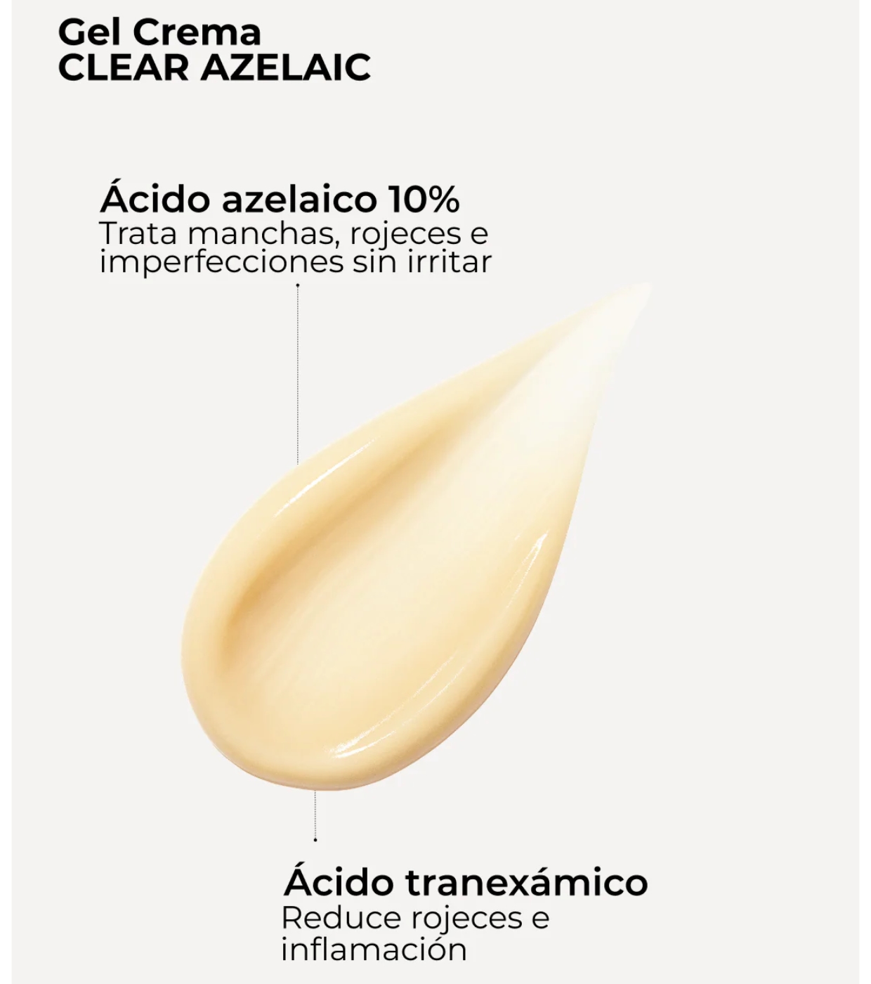 Clear Azelaic: AQUA, PROPYLENE GLYCOL, AZELAIC ACID, DIMETHICONE, SODIUM HYDROXIDE, TRANEXAMIC ACID, 3-O-ETHYL ASCORBIC ACID, SIMMONDSIA CHINENSIS SEED OIL, TOCOPHERYL ACETATE, ACETYL GLUCOSAMINE, GLYCYRRHETINIC ACID, SODIUM HYALURONATE, SODIUM HYALURONATE CROSSPOLYMER, HYDROLYZED SODIUM HYALURONATE, SODIUM ACETYLATED HYALURONATE, CERAMIDE NP, CERAMIDE AP, CHOLESTEROL, TETRAACETYLPHYTOSPHINGOSINE, GLYCOSPHINGOLIPIDS, PUNICA GRANATUM SEED CELL CULTURE LYSATE, SPHINGOMONAS FERMENT EXTRACT, GLYCERIN, DISODIUM EDTA, CAPRYLIC/CAPRIC TRIGLYCERIDE, MALTODEXTRIN, HYDROGENATED LECITHIN, TETRAMETHYL ACETYL-OCTAHYDRONAPHTHALENES, PENTYLENE GLYCOL, GLYCERYL STEARATE, STEARIC ACID, 1,2-HEXANEDIOL, XANTHAN GUM, CETEARYL ALCOHOL, HEXAMETHYLINDANOPYRAN, TRIMETHYLBENZENEPROPANOL, CITRUS LIMON PEEL OIL, ETHYLHEXYLGLYCERIN, LIMONENE, PARFUM.