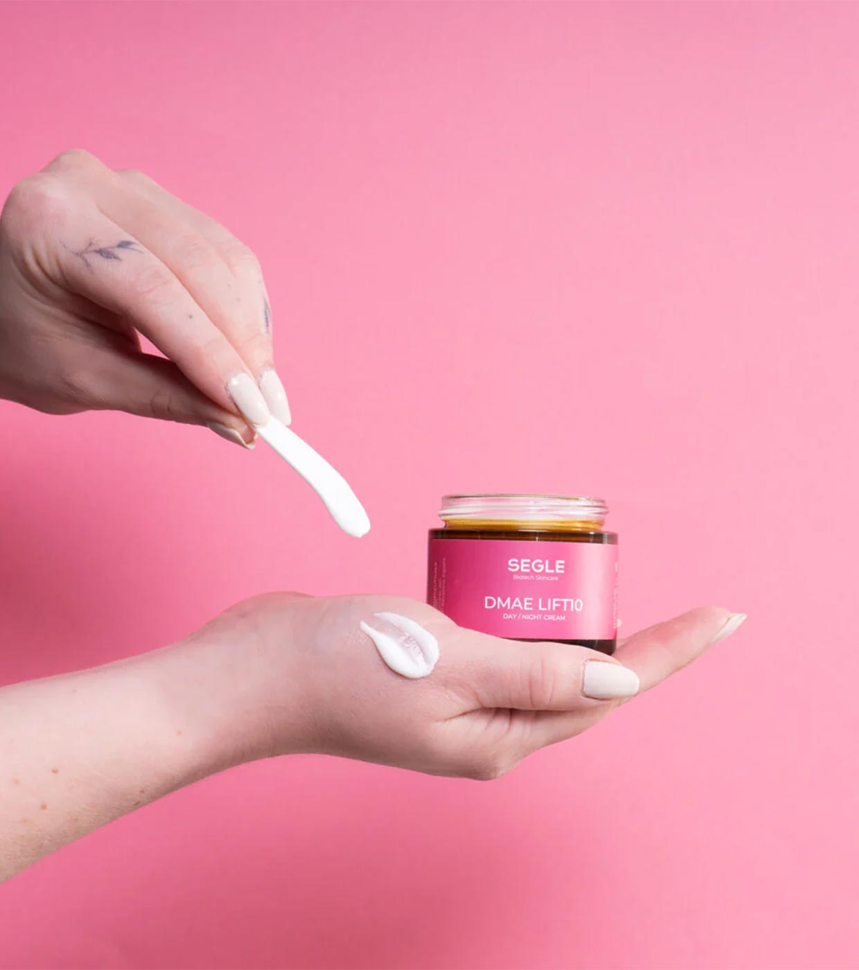 Die Effekt-Gesichtscreme flash lifting DMAE LIFT 10 von SEGLE festigt, erzeugt einen Lifting-Effekt und modelliert das Gesichtsoval neu