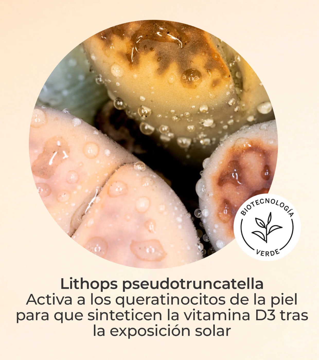 Es bietet einen wirksamen Schutz, der Rötungen der Epidermis, der Bildung von Falten und Flecken sowie allgemein allen Hauterscheinungen von Unverträglichkeiten oder vorzeitiger Hautalterung durch Sonneneinstrahlung vorbeugt.
