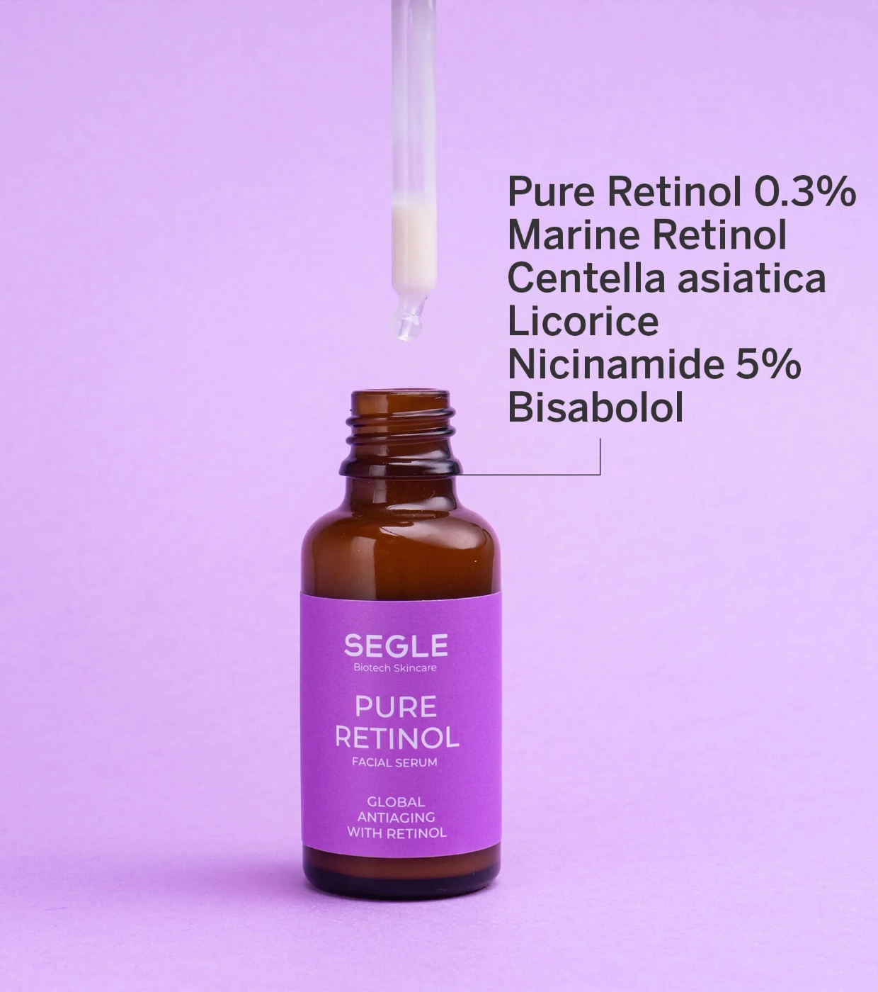 Sérum Pure Retinol:AQUA, GLYCERIN, CAPRYLIC/CAPRIC TRIGLYCERIDE, NIACINAMIDE, ISONONYL ISONONANOATE, PROPYLENE GLYCOL, GLYCINE SOJA SEED EXTRACT, TOCOPHERYL ACETATE, RETINOL, CHLORELLA VULGARIS EXTRACT, BISABOLOL, CENTELLA ASIATICA EXTRACT, GLYCYRRHIZA GLABRA ROOT EXTRACT, LECITHIN, LACTIC ACID, CITRIC ACID, SODIUM PHYTATE, PROPANEDIOL, XANTHAN GUM, POLYSORBATE 20, CAPRYLYL GLYCOL, SODIUM LEVULINATE, POTASSIUM SORBATE, SODIUM BENZOATE, FARNESOL, BHT, BHA, PARFUM.