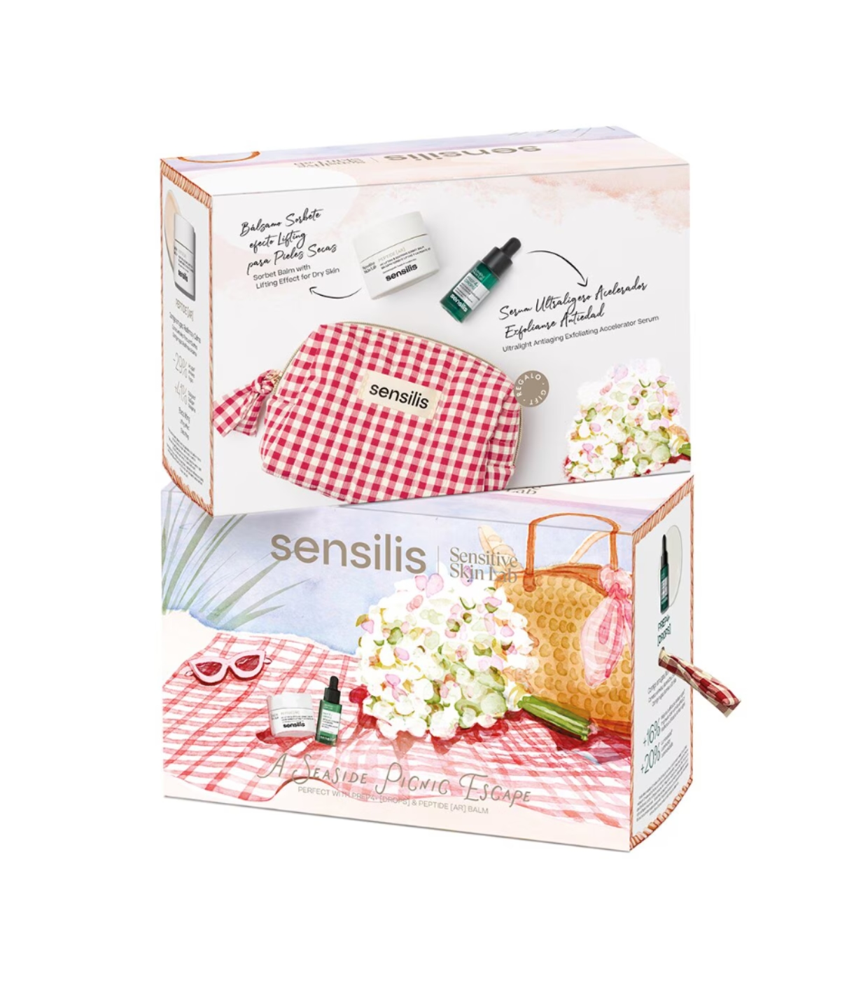 Das A Seaside Picnic Escape-Set von Sensilis ist eine Anti-Aging-Gesichtsbehandlung, die speziell für empfindliche Haut oder Haut mit Anzeichen der Hautalterung entwickelt wurde und nach Festigkeit, Feuchtigkeit und einem sichtbaren Lifting-Effekt strebt.