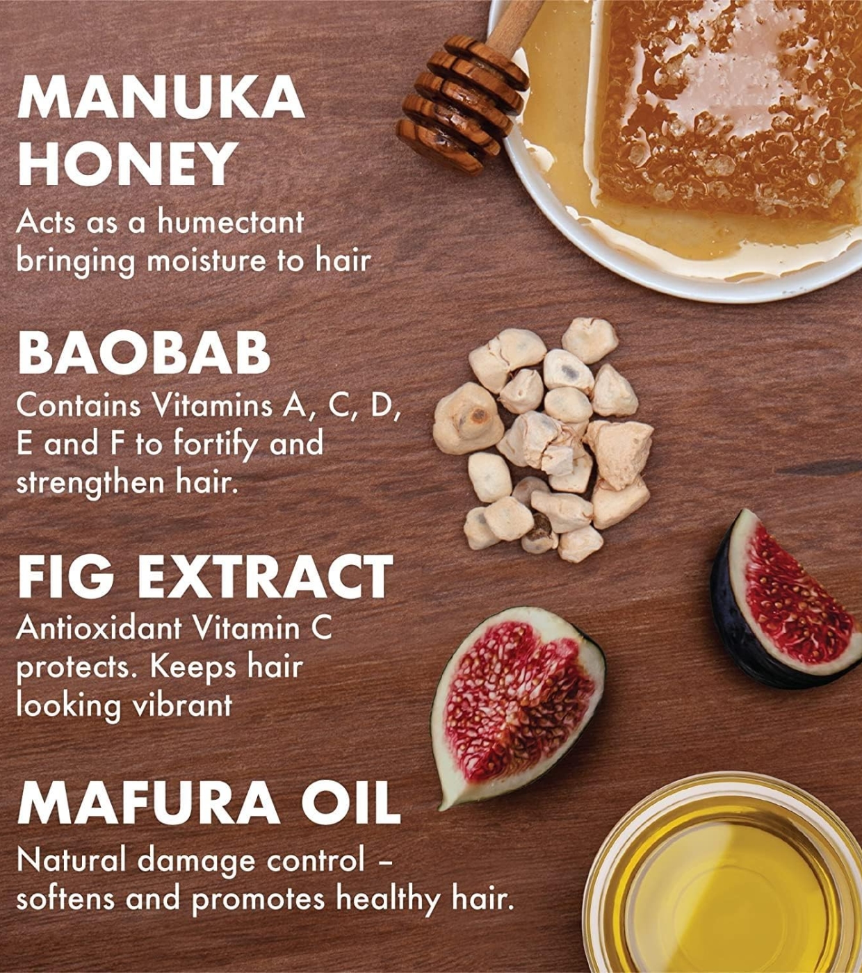 Water (Aqua), Cetyl Alcohol, Cocos Nucifera (Coconut) Oil, Behentrimonium Methosulfate, Butyrospermum Parkii (Shea) Butter*, Glycerin (Vegetable), Stearyl Alcohol, Behentrimonium Chloride, Panthenol, Trichilia Emetica (Mafura) Seed Oil, Honey, Hydrolyzed Rice Protein, Fragrance (Essential Oil Blend), Adansonia Digitata (Baobab) Seed Oil, Cetrimonium Chloride, Persea Gratissma (Avocado) Oil, Ficus (Fig) Extract, Mangifera Indica (Mango) Seed Butter *, Tocopherol, Aloe Barbadensis Leaf Extract, Caprylhydroxamic Acid, Caprylyl Glycol, Butylene Glycol Butter *