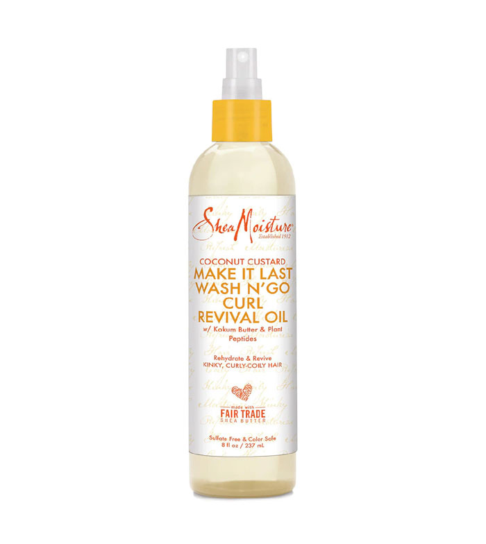 Make It Last Wash N' Go Curl Oil aus der Coconut Custard Linie von Shea Moisture enthält eine ideale Ölmischung, um Locken sofort zu erfrischen und wiederzubeleben.