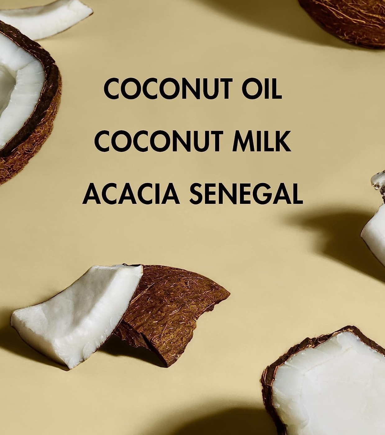 Enthält auch Kokosmilch und Akazien-Senegal für Glanz und Körperfeuchtigkeit.