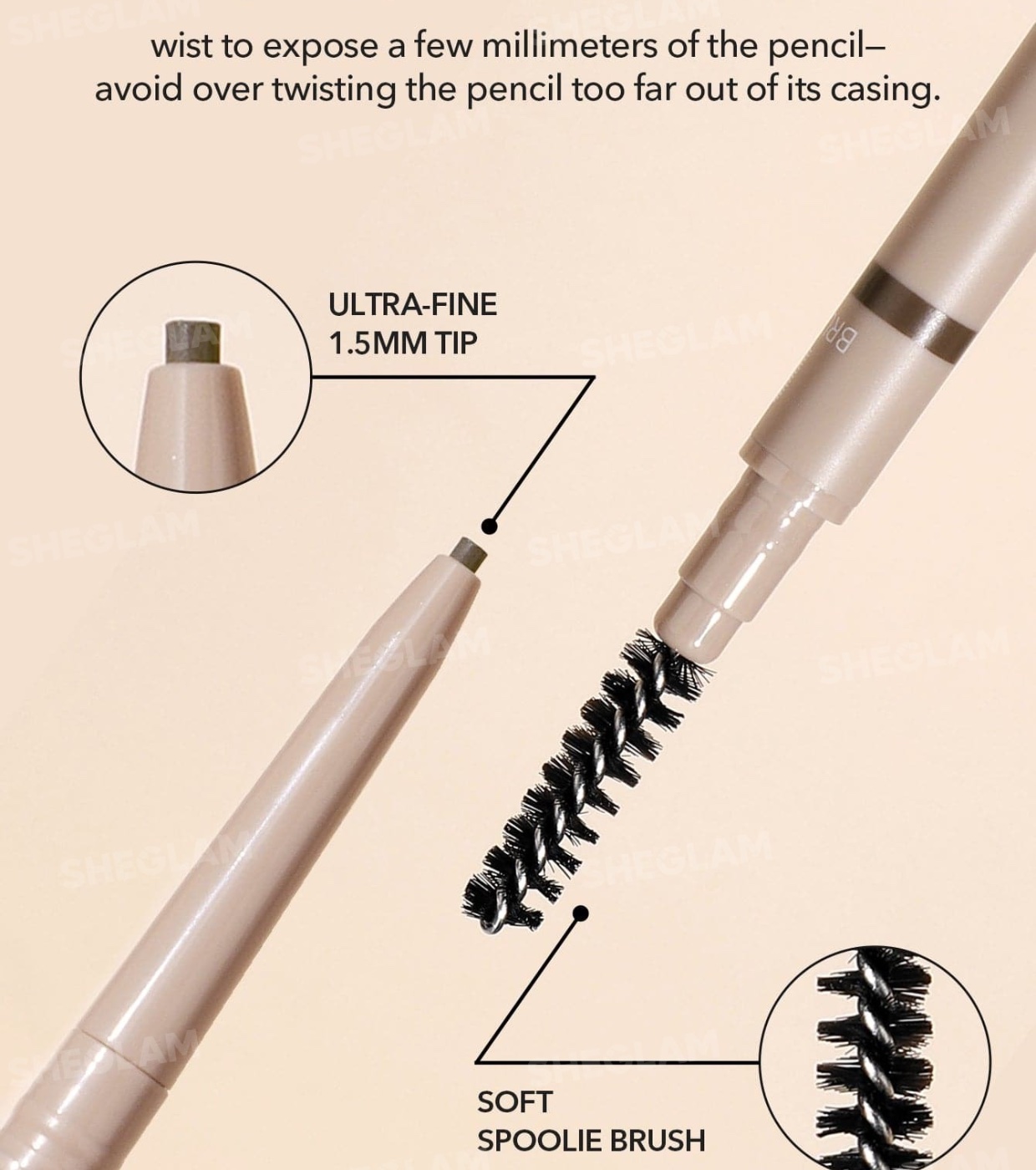 Der Insta-Fill Augenbrauenstift von SHEGLAM verfügt über eine ultrafeine 1,5-mm-Spitze, die für maximale Präzision, Komfort und Kontrolle bei jedem Strich sorgt.